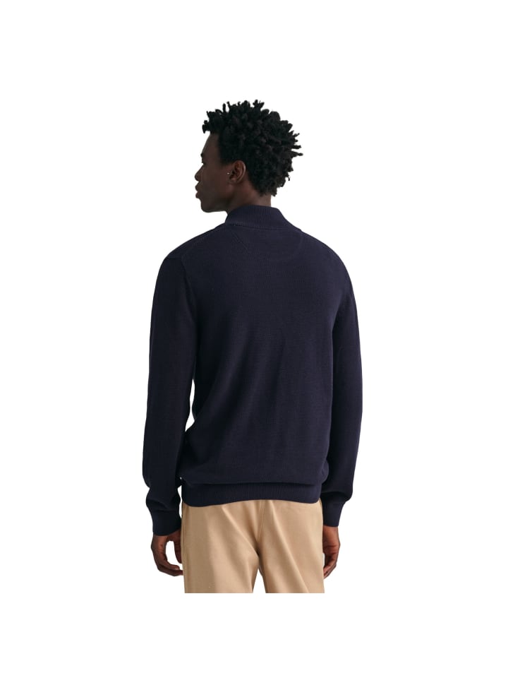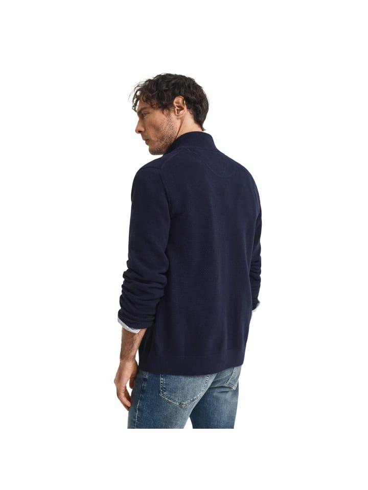 Простой кардиган от бренда GANT. Изготовлен из легкого хлопкового пике, с ребристым воротником-стойкой и манжетами, застежкой на молнию, небольшим вышитым логотипом и классическим кроем.