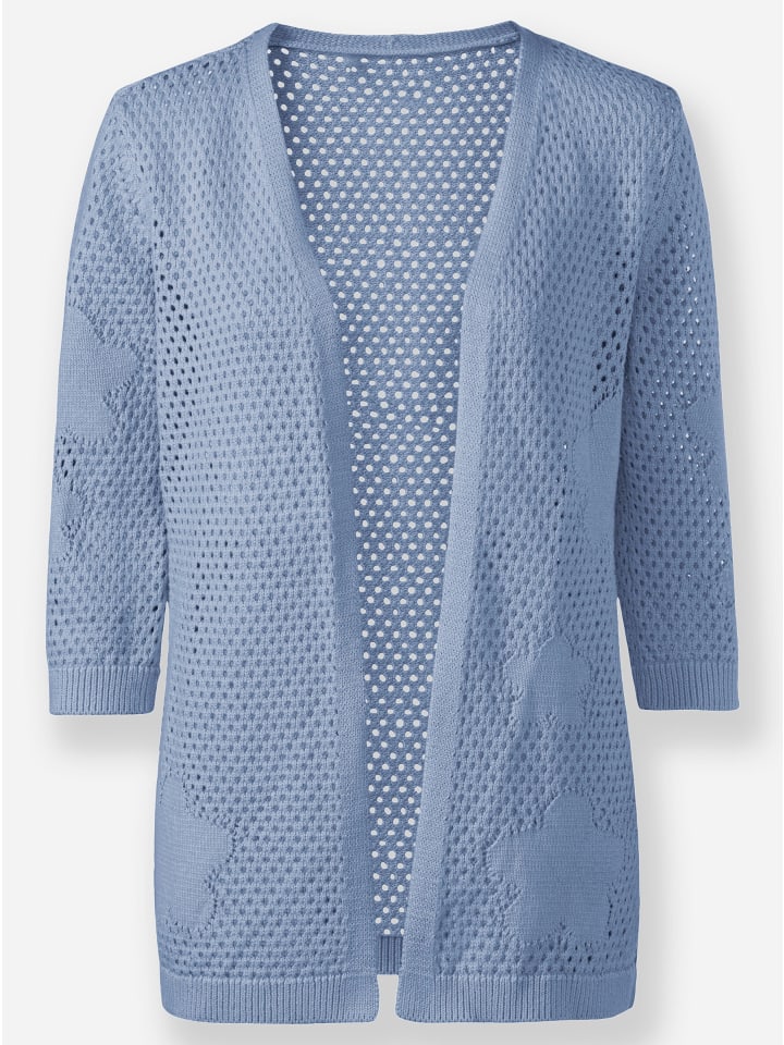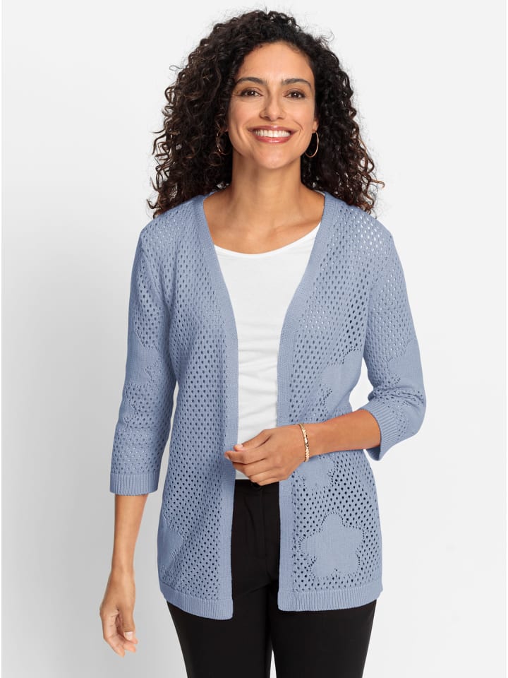 Сочетание воздушной сетки по всему изделию и вышитых цветов спереди и на рукавах делает этот ажурный кардиган таким особенным. Он имеет привлекательный открытый силуэт с рукавами 3/4. Высококачественный трикотаж, идеально подобранный по фигуре. Изготовлен из приятного для кожи хлопка. Сертифицировано GOTS.