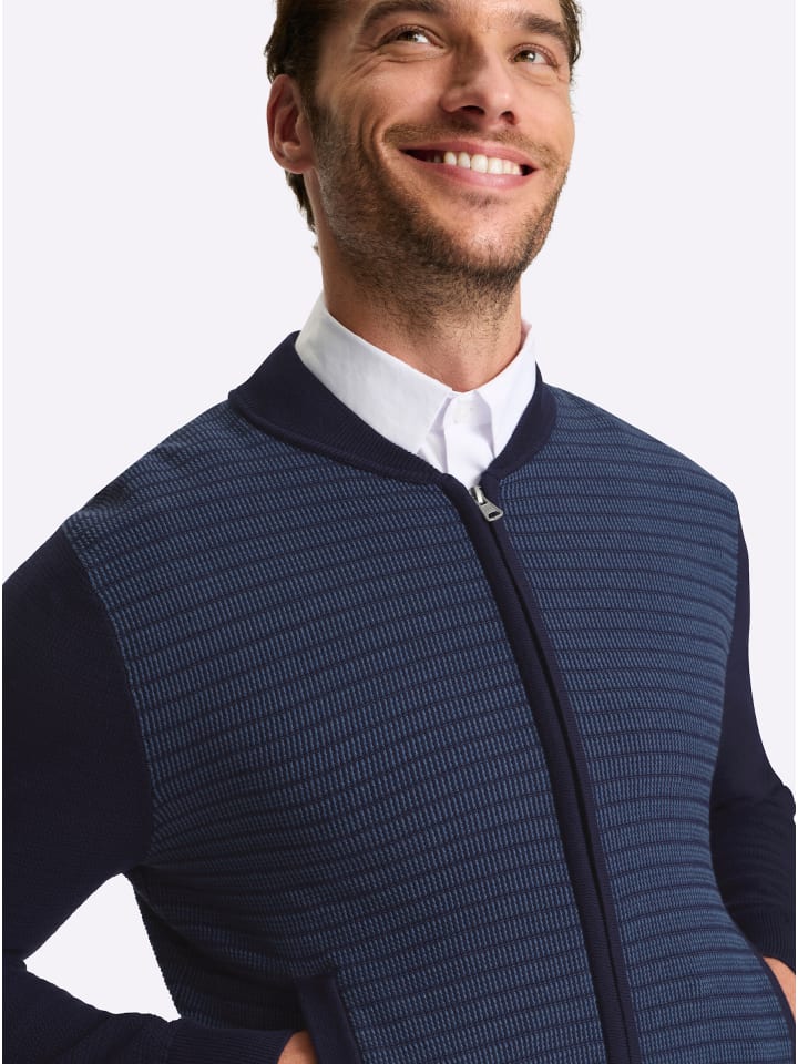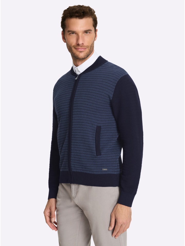 Этот кардиган - то, что нужно, чтобы стать вашим фаворитом! Кардиган от Marco Donati с эффектным горизонтальным ребристым узором, воротником-блузоном и потайной молнией. Ребристые манжеты на длинных рукавах и подоле обеспечивают идеальную посадку. Два боковых кармана. Небольшая металлическая этикетка слева над подгибом. В поддержку инициативы «Хлопок, сделанный в Африке».
