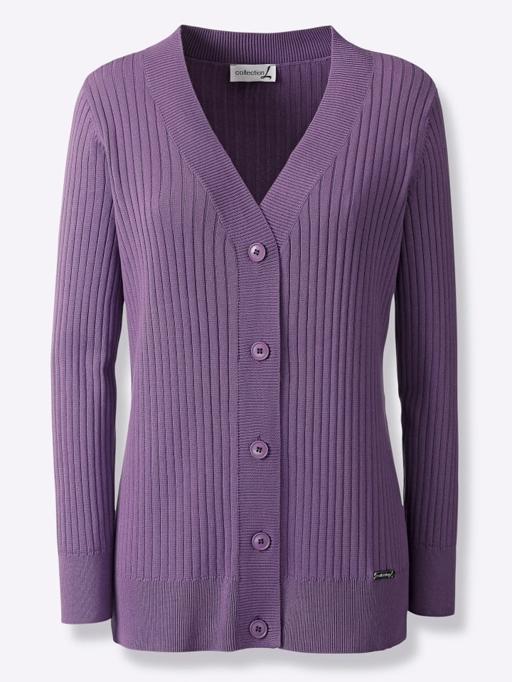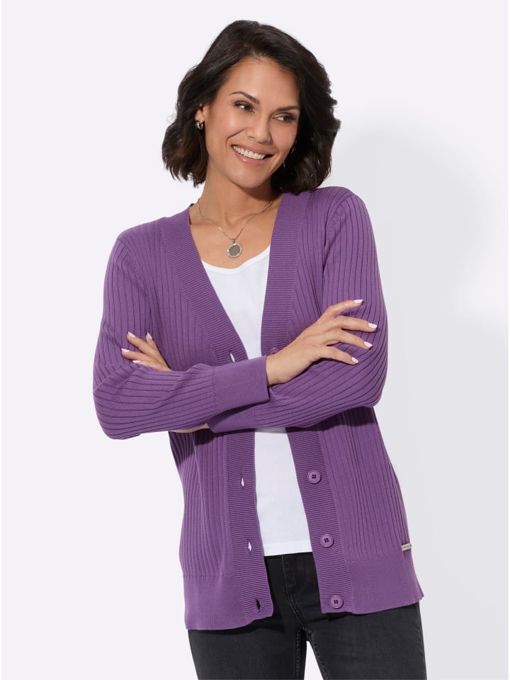 Незаменимая вещь в повседневном гардеробе на все случаи жизни! Кардиган в рубчик с V-образным вырезом, планкой на пуговицах и длинными рукавами. Поддерживает инициативу «Хлопок, сделанный в Африке».