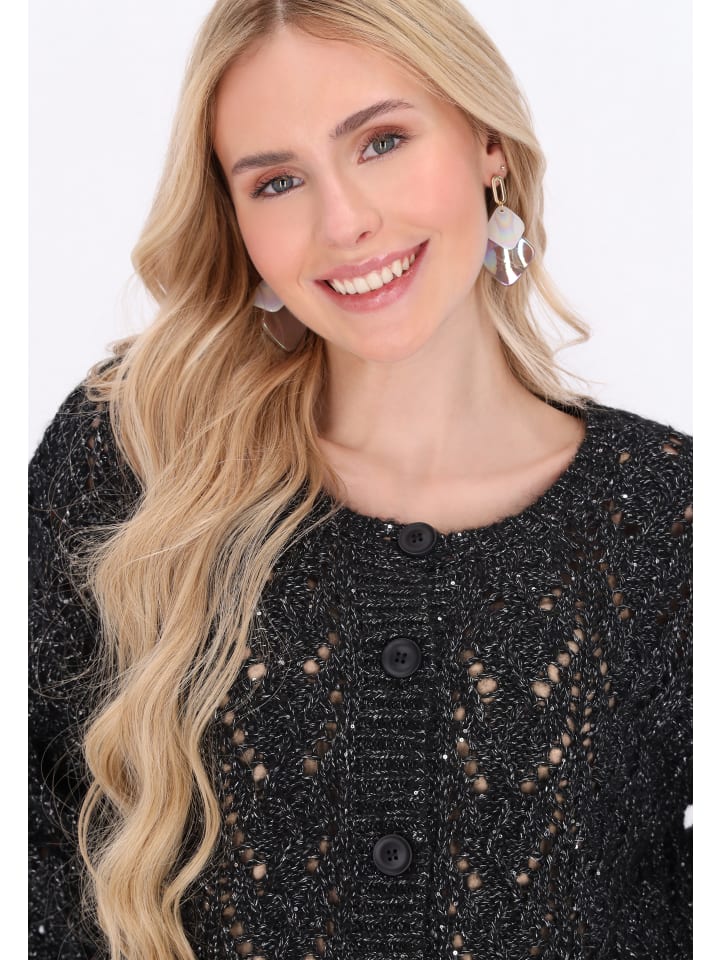 Обновите свой гардероб этим стильным кардиганом свободного кроя с круглым вырезом. Кардиган с длинными рукавами и спущенной линией плеч имеет элегантную застежку на пуговицы спереди. Ажурный вязаный узор с добавлением металлизированной нити привнесет непринужденный и комфортный штрих в модные образы, сделав его незаменимой вещью в гардеробе каждой модницы. Этот кардиган входит в коллекцию Fashion Look.