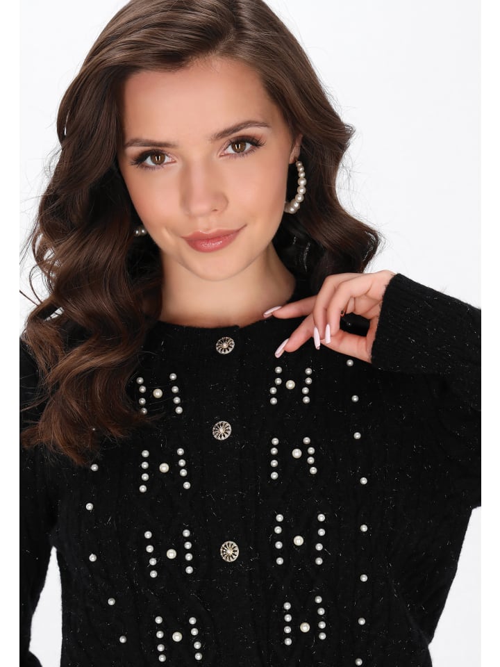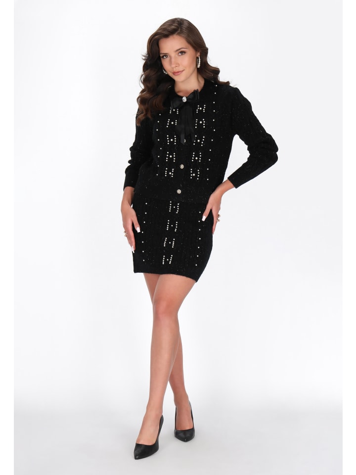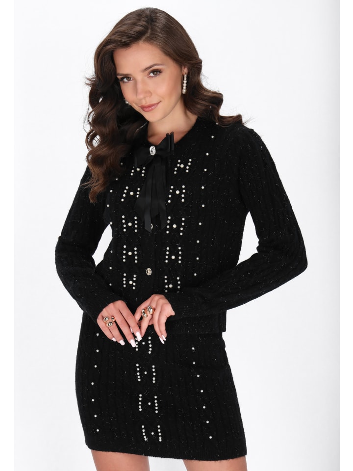 Очаровательный кардиган прямого кроя - это сочетание классики и женственных деталей. Изготовлен из мягкого трикотажного полотна с декоративным клетчатым переплетением, он обеспечивает тепло и комфорт на каждый день. Модель с круглым вырезом, длинными рукавами и застежкой на пуговицы украшена изящным жемчугом и нежным бантом на шее, что добавляет романтики. Этот кардиган идеально подойдет для повседневного образа, сочетая комфорт с утонченной элегантностью. Он входит в коллекцию Fashion Look.