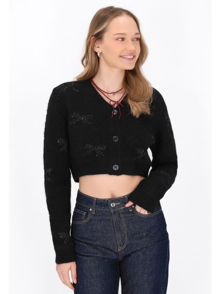 - Укороченный кардиган свободного кроя с V-образным вырезом и длинными рукавами
