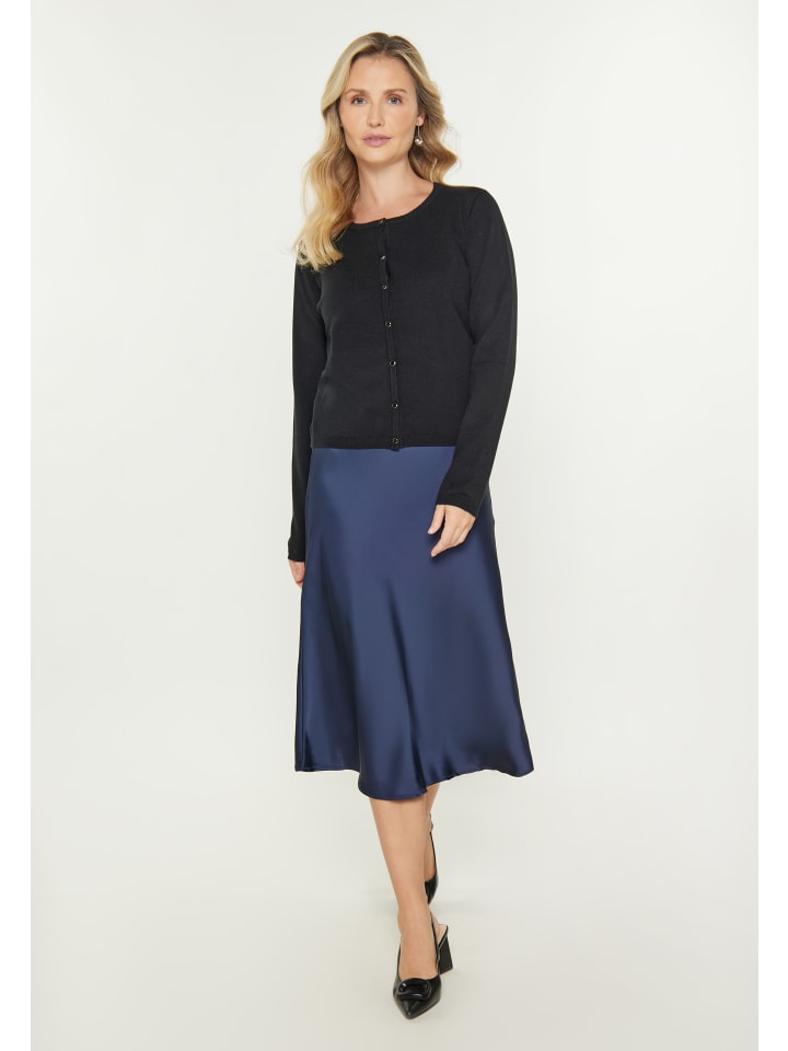 - Кардиган прямого кроя с круглым вырезом и длинными рукавами