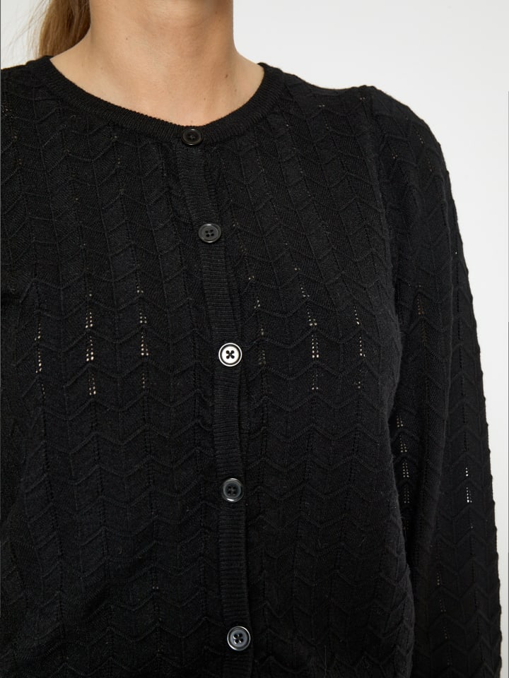 Пополните свой гардероб кардиганом PCRosy от Peppercorn - шедевром утонченной элегантности и комфорта. Изготовленный из высококачественной вискозы LENZING ECOVERO, этот кардиган обладает исключительно мягкой текстурой, которая дарит ощущение роскоши. Элегантный круглый вырез горловины добавляет нотку классической изысканности, а длинные рукава тщательно продуманы для идеальной драпировки и изысканного вида. Сложный вязаный узор добавляет легкий намек на текстуру, делая этот кардиган эффектным предметом гардероба для любого случая. Его легко сочетать с брюками строгого кроя для создания элегантного офисного образа или поверх простого платья для поездки на выходные.