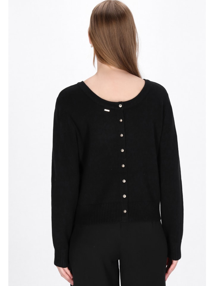 - Кардиган прямого кроя с застежкой на пуговицы сзади и длинными рукавами