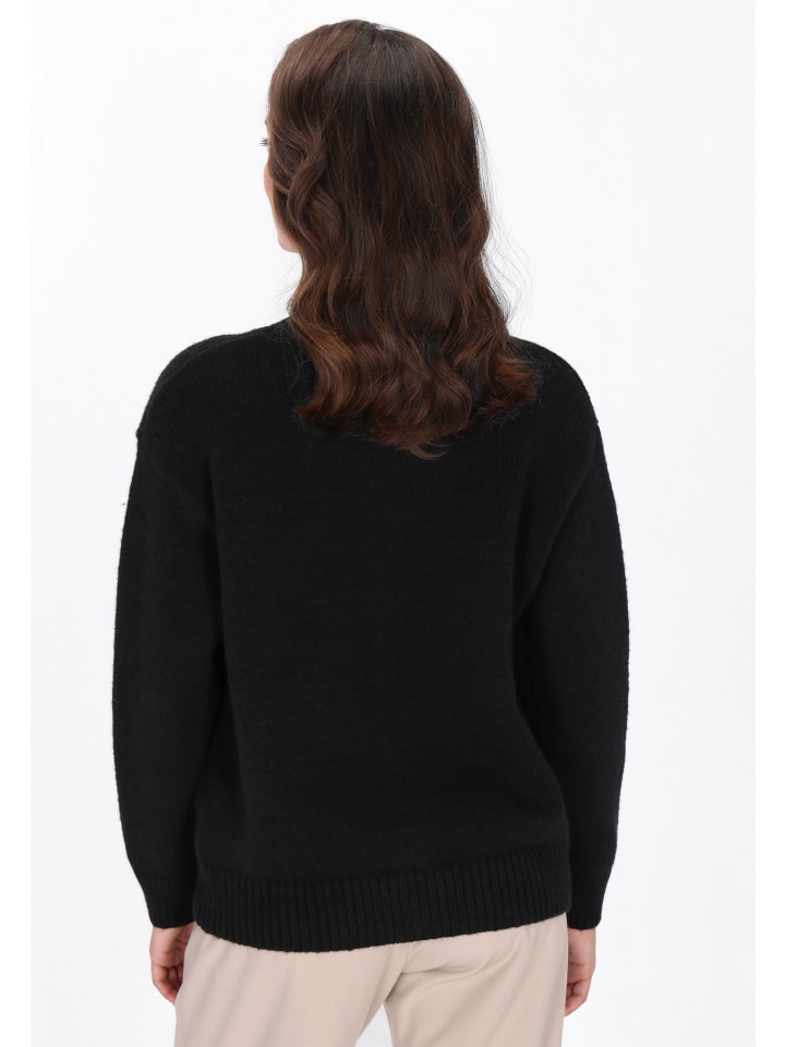 - Кардиган свободного кроя с круглым вырезом и длинными рукавами