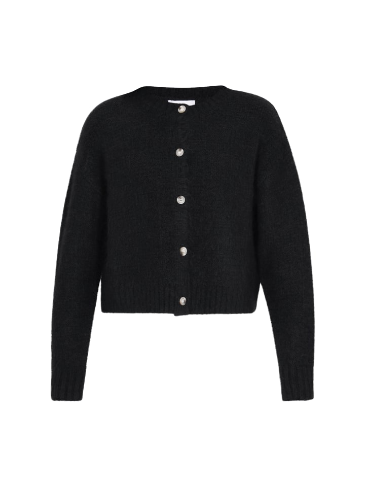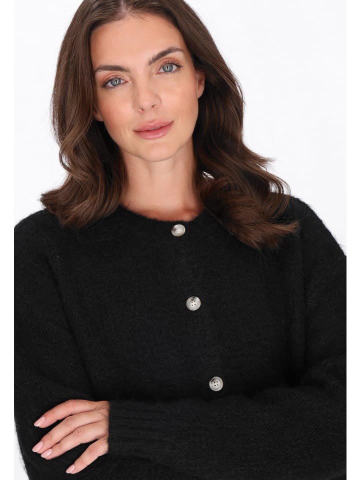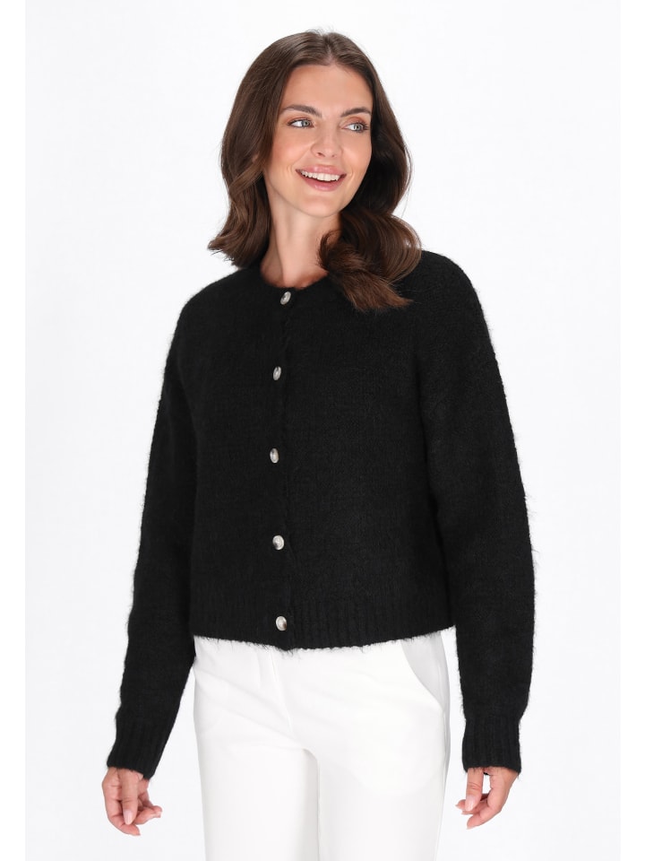 - Кардиган свободного кроя с круглым вырезом и длинными рукавами