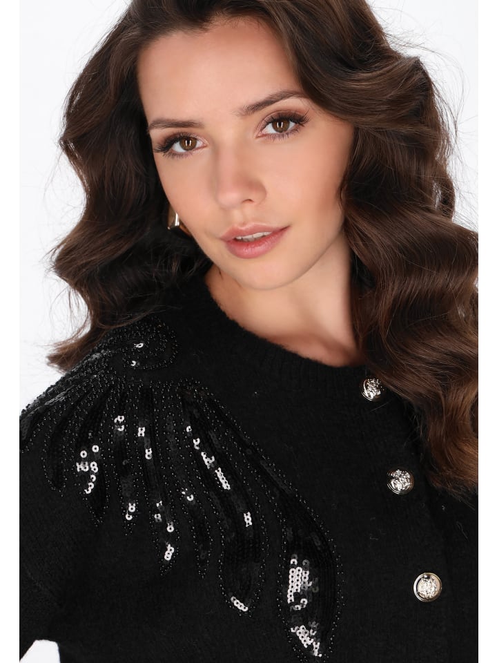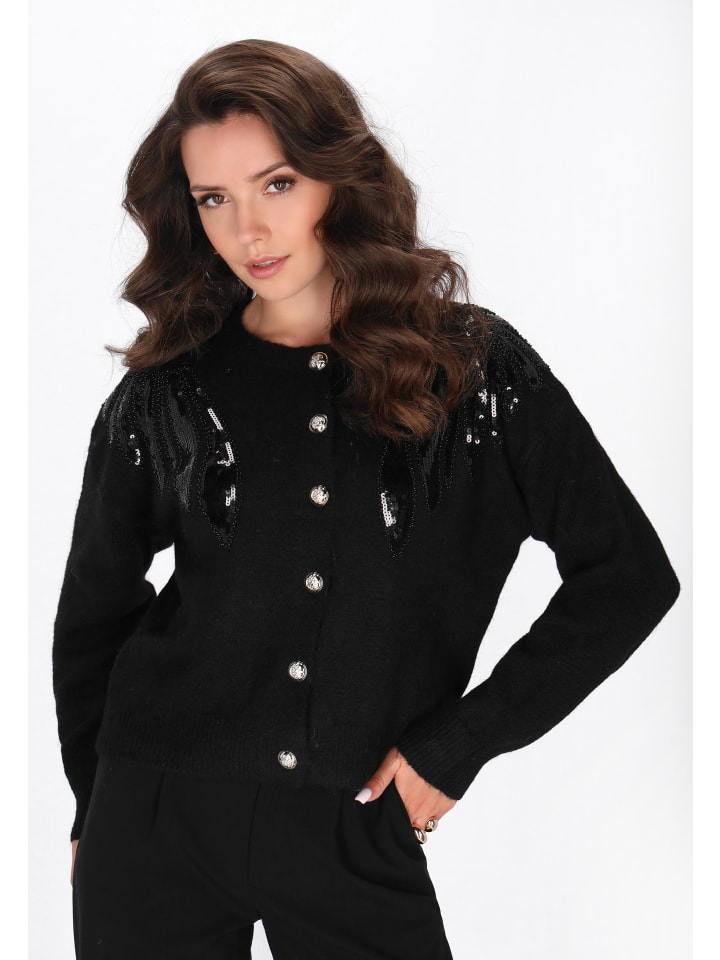 Этот свободный кардиган идеально сочетает в себе комфорт и утонченную элегантность. Изготовлен из мягкого трикотажного полотна, он дарит приятные ощущения в течение всего дня. Классический круглый вырез горловины и длинные рукава со спущенной линией плеча придают ему непринужденный, современный вид. Планка с пуговицами и пайетки добавляют нотку гламура общему образу, не нарушая однотонный, простой дизайн. Это идеальный выбор для повседневного образа с ноткой моды. Этот кардиган входит в коллекцию Fashion Look.