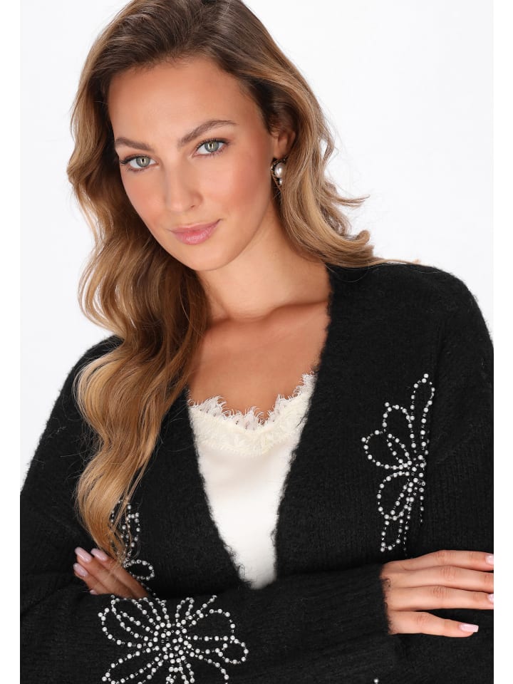 Будьте стильными и непринужденными в этом кардигане свободного кроя с открытым передом из коллекции Fashion Look. Кардиган из мягкой трикотажной ткани с нежным цветочным узором, длинными рукавами и модным спущенным плечом создает непринужденный образ. Этот кардиган, украшенный элегантными жемчужными деталями, сочетает в себе непринужденный комфорт и изысканность - идеально подходит для повседневной носки.