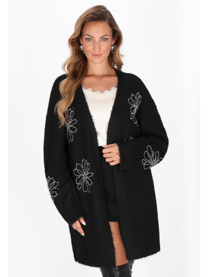 - Кардиган свободного кроя с открытым передом и длинными рукавами