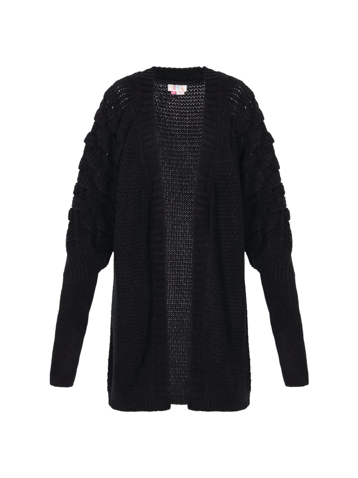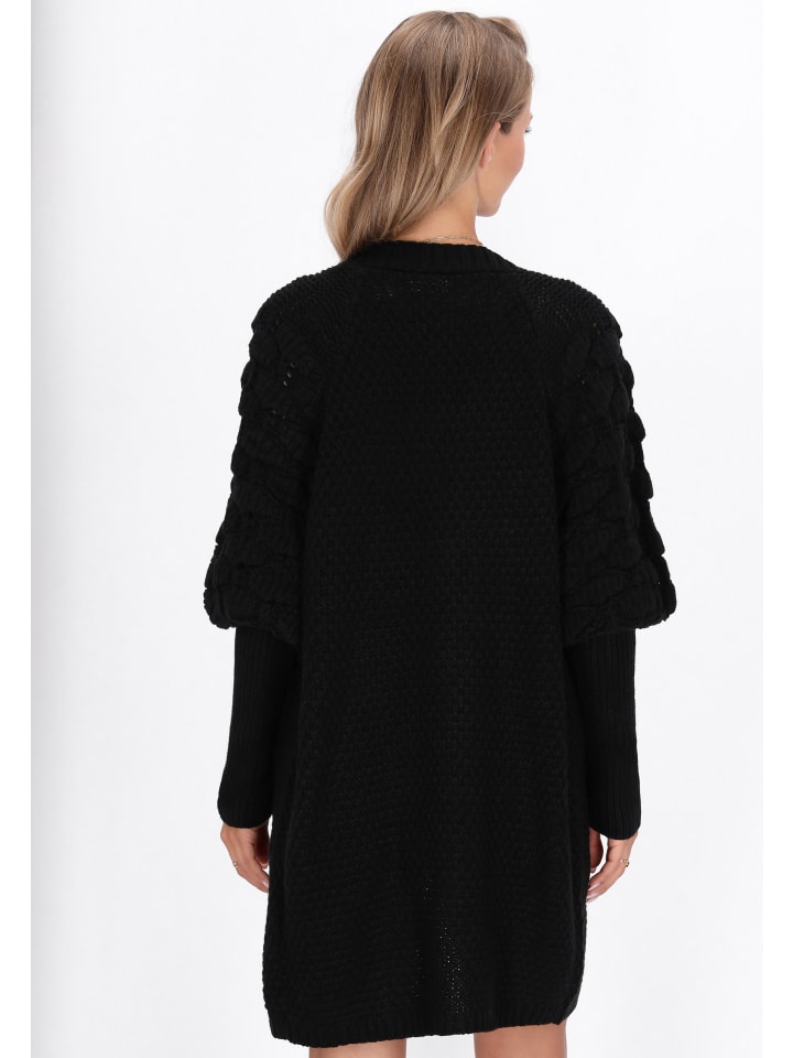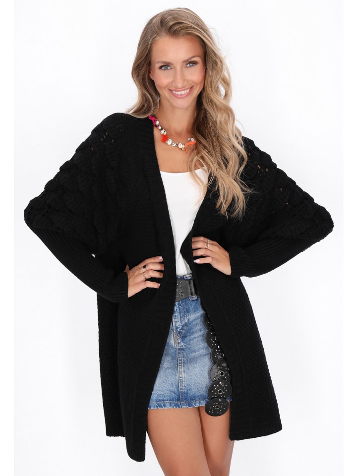 - Кардиган свободного кроя с открытым воротом и длинными рукавами