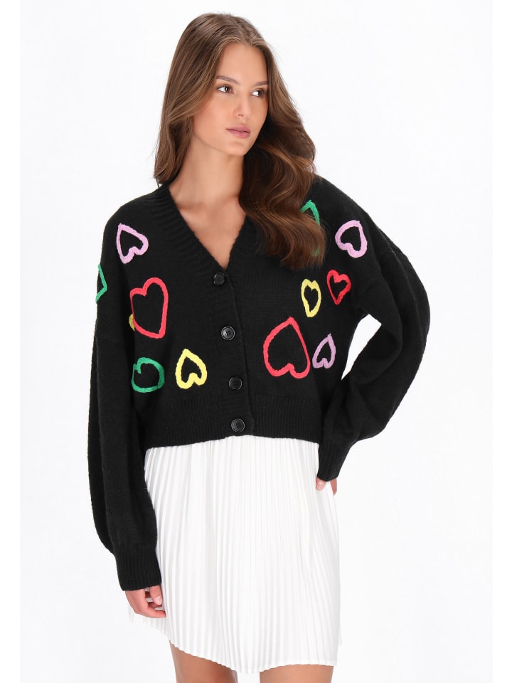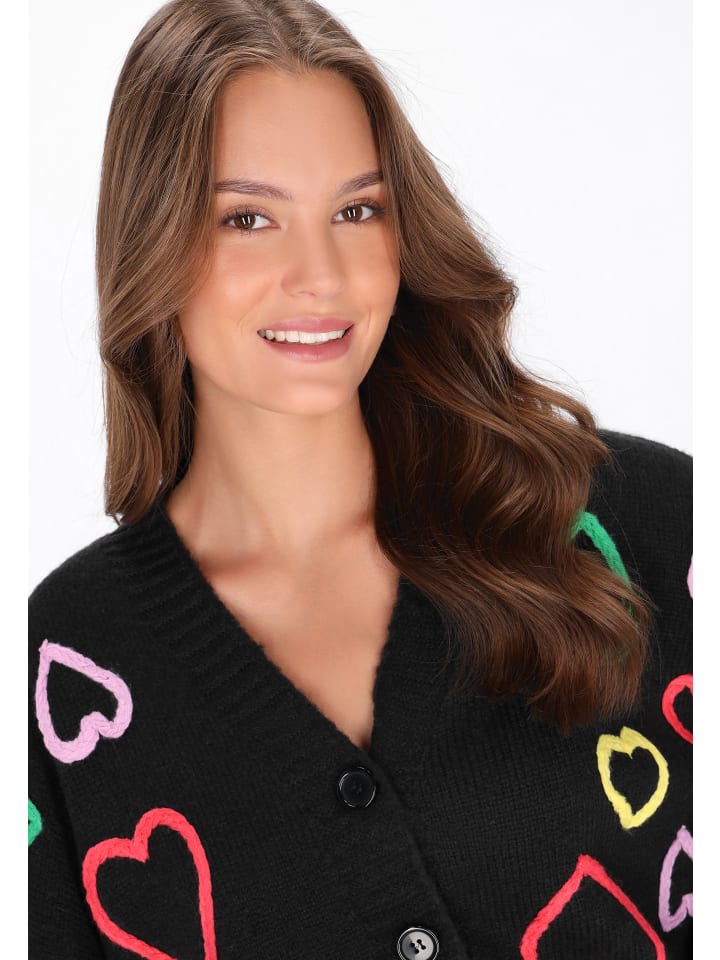 Этот очаровательный свободный кардиган идеально сочетает в себе комфорт и модный дизайн. Он имеет V-образный вырез, длинные рукава со спущенной линией плеча и классическую застежку на пуговицы. Кардиган из мягкого трикотажа украшен изящной вышивкой в виде сердечек, что придает ему женственности. Он идеально подходит для повседневного ношения, предлагая непринужденный и комфортный образ, идеально подходящий для тех, кто ищет уютный стиль. Кардиган входит в коллекцию Young Fashion.