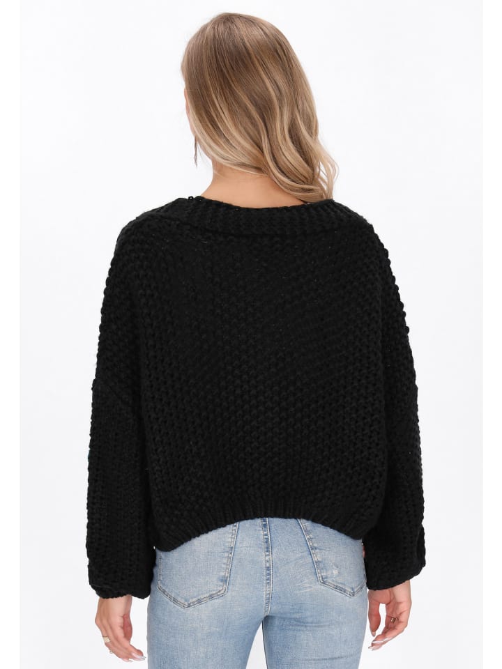 - Кардиган свободного кроя с V-образным вырезом и длинными рукавами