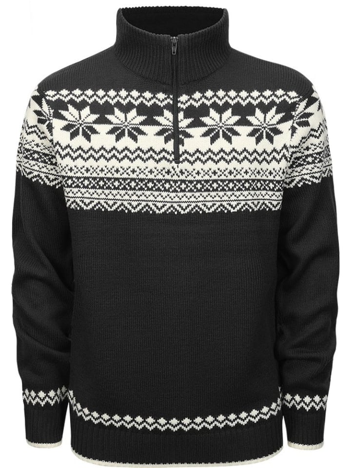 ХАРАКТЕРИСТИКИ:- классический, теплый трикотажный свитер / скандинавский дизайн / мягкая флисовая подкладка на воротнике / приятный, мягкий на ощупь, не вызывает зуда / трикотажные манжеты и низ / классический прямой крой МАТЕРИАЛ: Внешний материал 1: 100% полиакрил, Внешний материал 2: 100% полиэстер