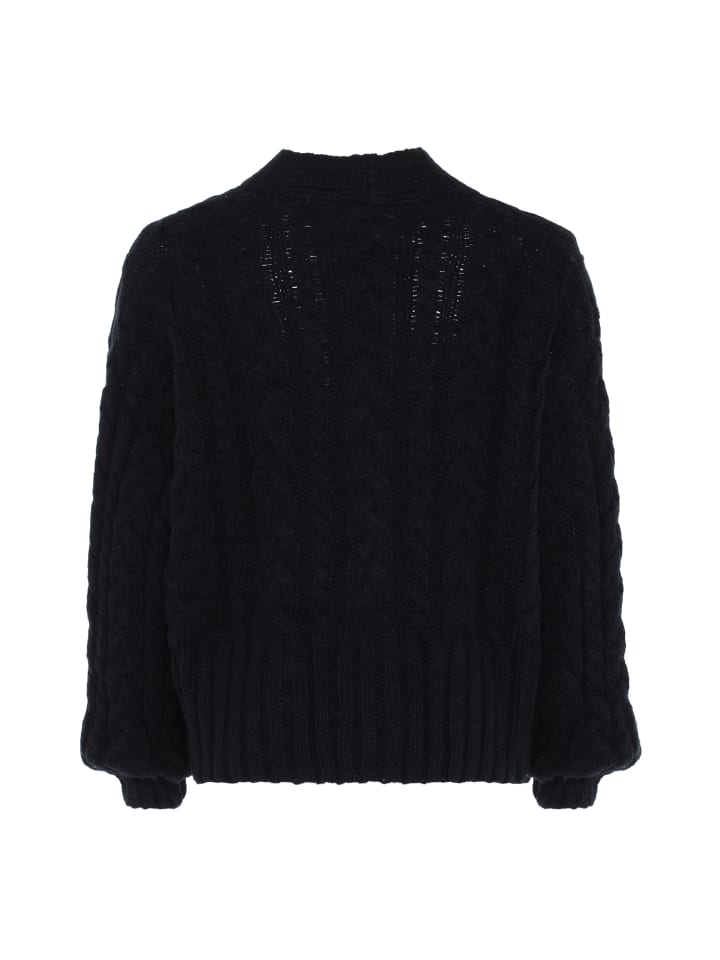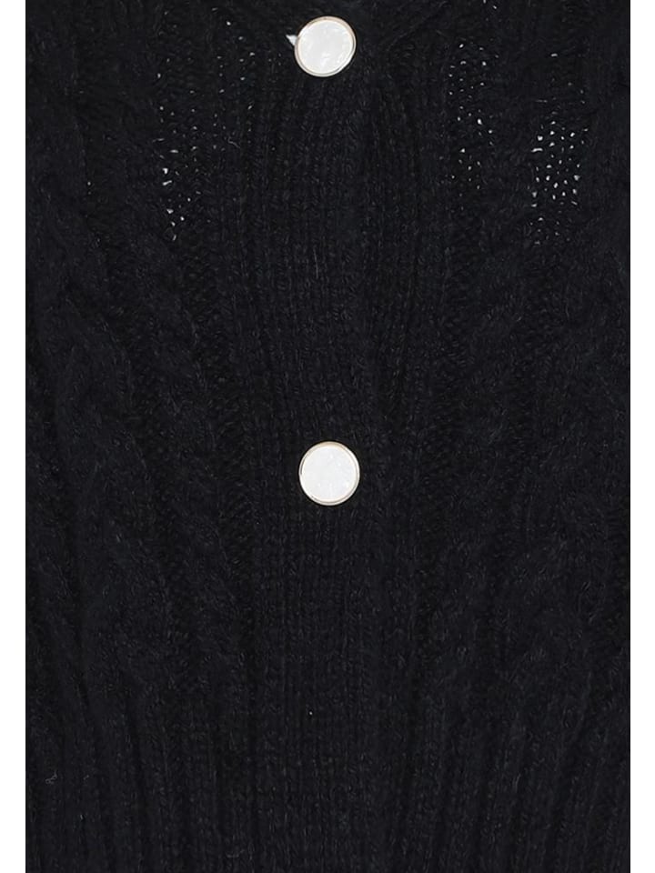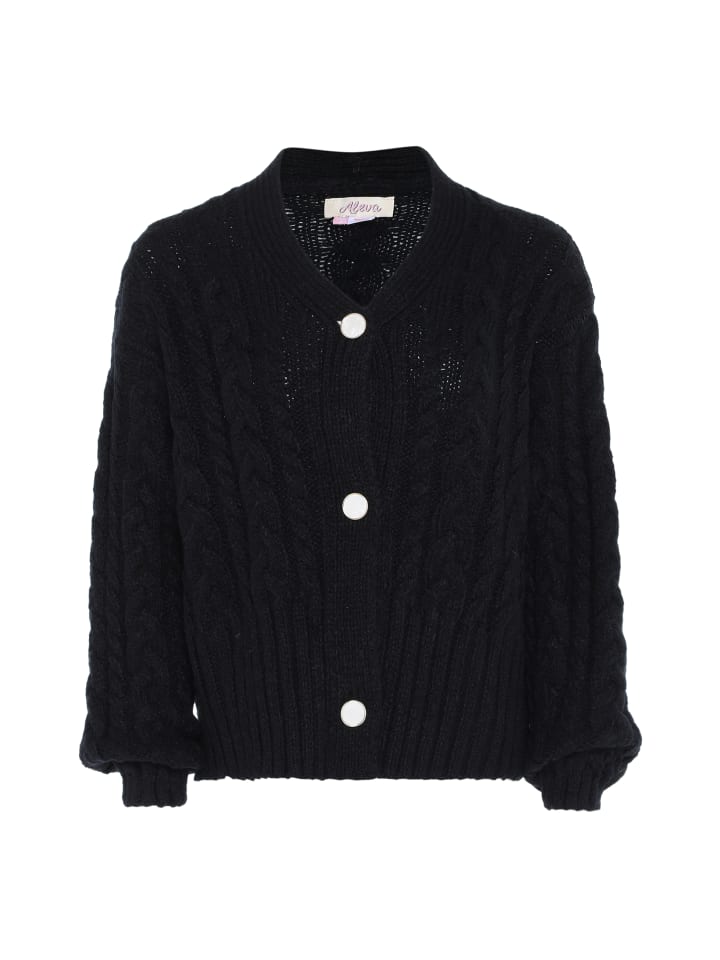 Этот вязаный кардиган с очаровательным узором «косы» отличается V-образным вырезом, а также ребристыми манжетами и нижним краем. Спереди планка застегивается на три большие круглые пуговицы, а свободный крой со слегка спущенными плечами обеспечивает непринужденный комфорт. Легкий блеск ткани намекает на присутствие светоотражающих или мерцающих волокон, что придает этому стильному изделию нотку изысканности. Эта вещь, разработанная совместно с aleva, сочетает в себе вневременной стиль и современный дизайн.