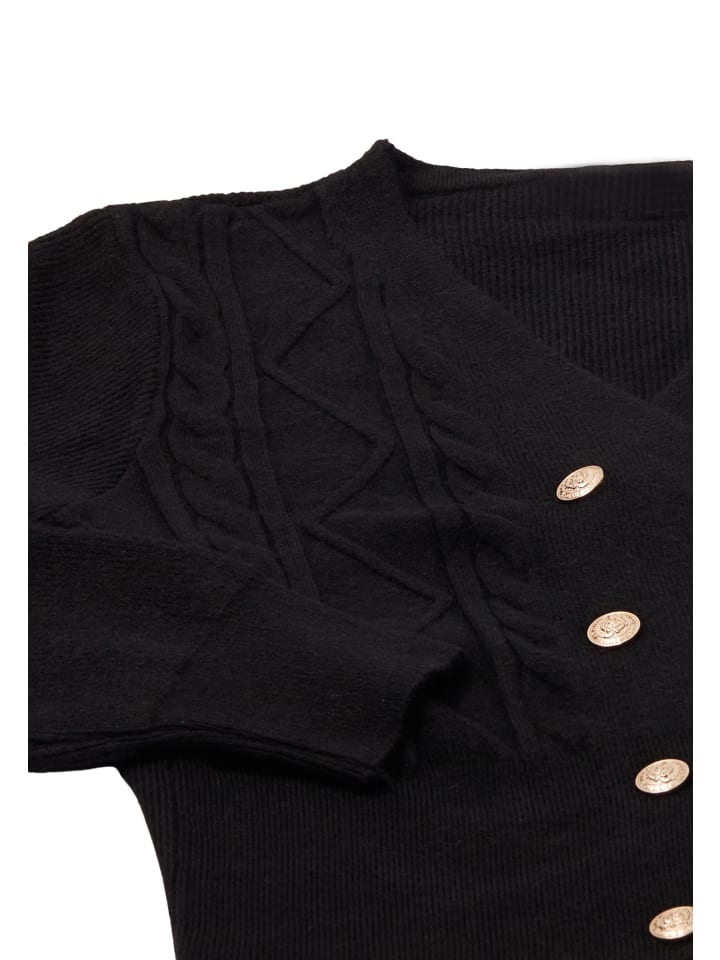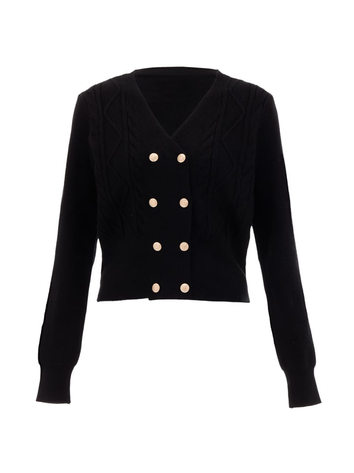 Этот элегантный вязаный кардиган с V-образным вырезом и двубортным передом с двумя рядами пуговиц. Длинные рукава и ребристые манжеты дополнены узором «косички» спереди для дополнительной фактуры. Эффектные пуговицы создают смелый контраст, гармонично сочетая повседневный и деловой стиль, делая этот кардиган универсальным для любого случая. Разработанный совместно с NAEMI, этот кардиган сочетает в себе классический стиль и современный дизайн.