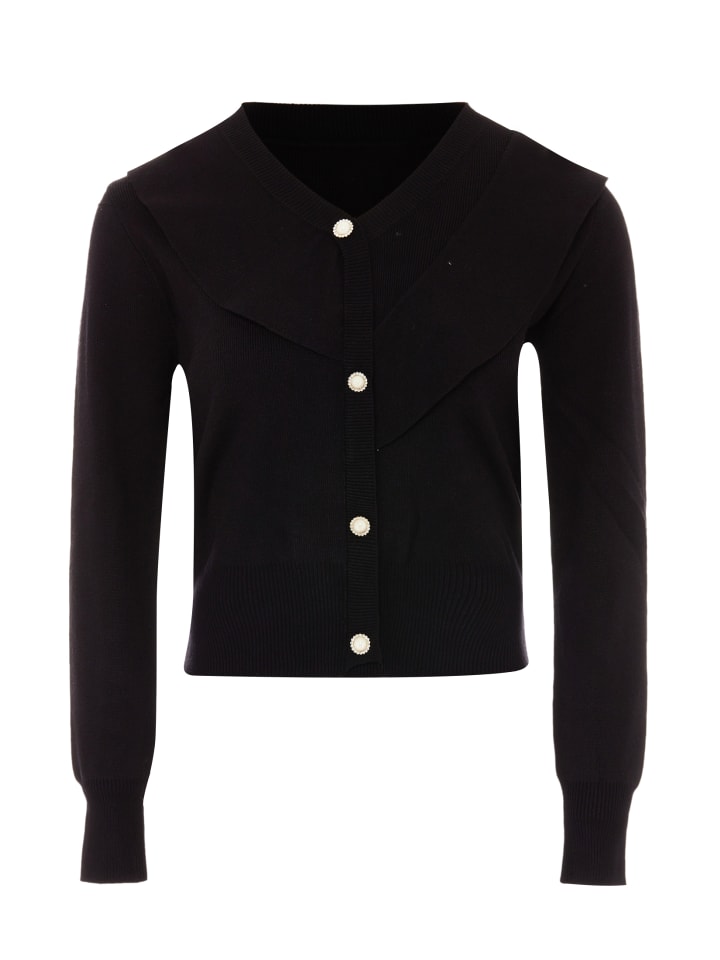 - Кардиган прямого кроя с V-образным вырезом и длинными рукавами
