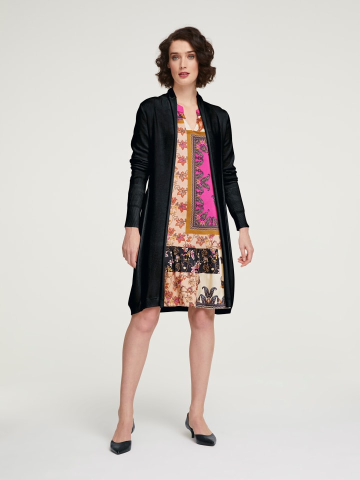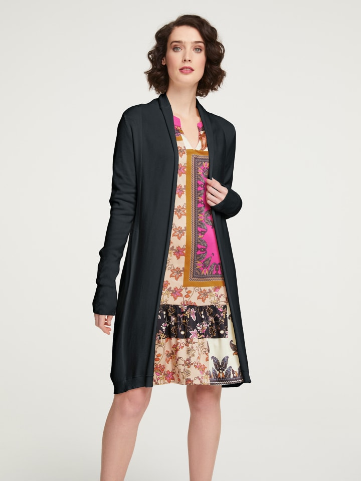 Длинный кардиган. Модный повседневный образ из приятной мягкой тонкой вязки. Комфортный крой, длинные рукава. Открытый перед.