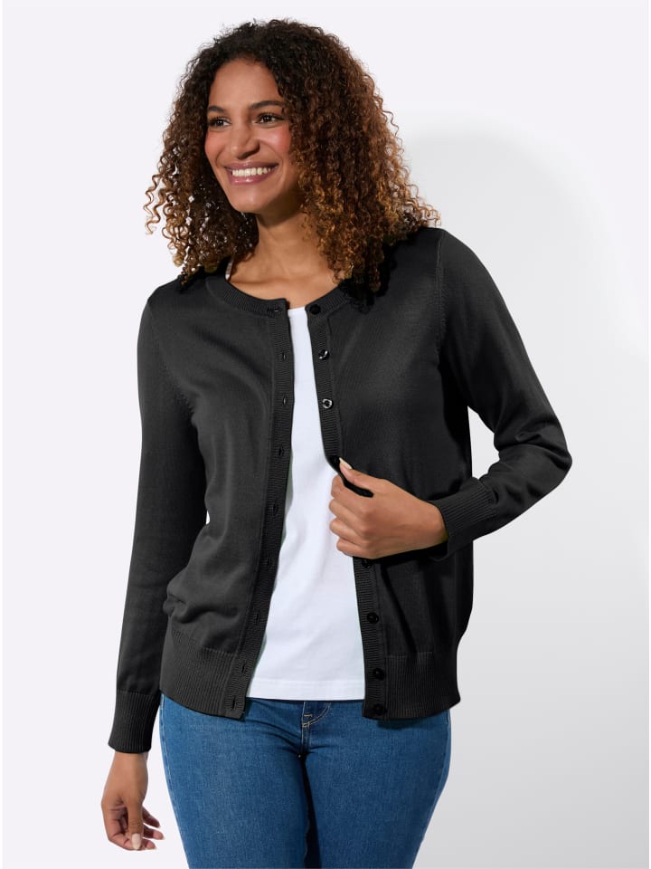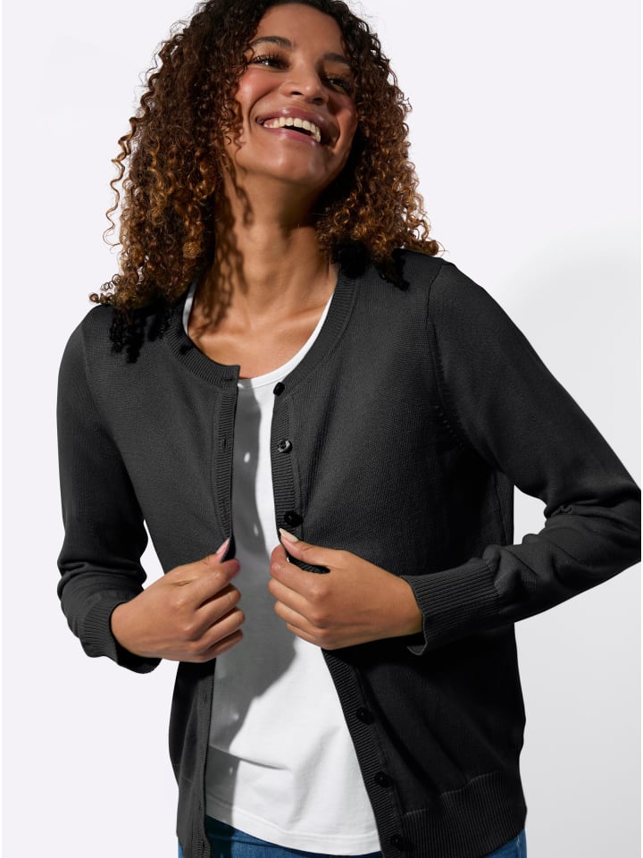 Этот кардиган с круглым вырезом и планкой на пуговицах - ваш новый повседневный фаворит! Широкие ребристые манжеты на длинных рукавах и подоле. Сертифицировано GOTS.