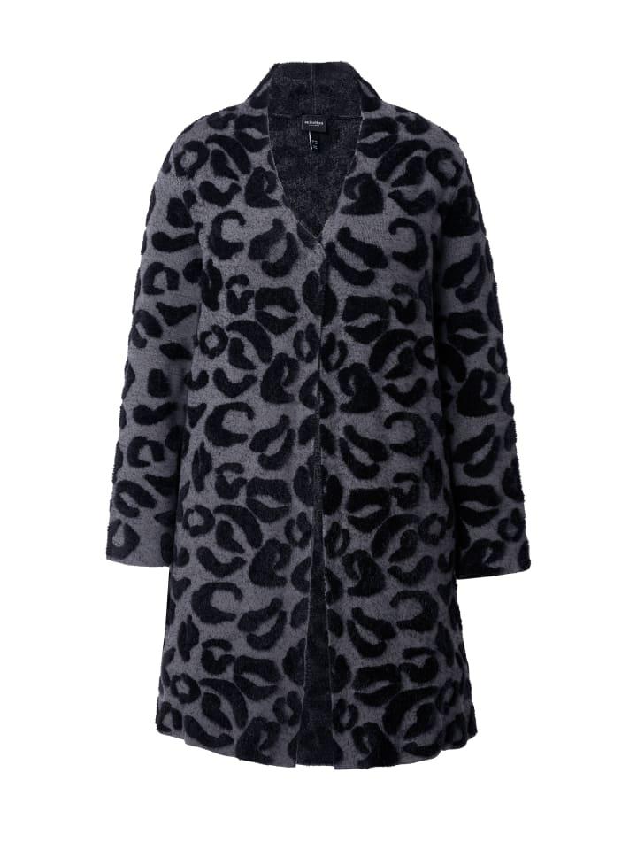 Длинный кардиган, удлиненный А-силуэт, выполнен из мягкой тонкой вязкой с добавлением вискозы с леопардовым жаккардовым узором. Аккуратная вязка, без торчащих ниток. Воротник-стойка, застежка на кнопки, карманы в боковых швах. Длинные рукава, гладкие края.