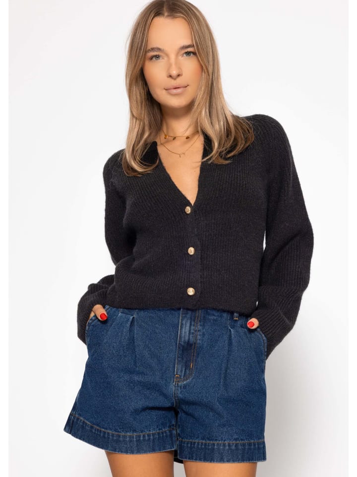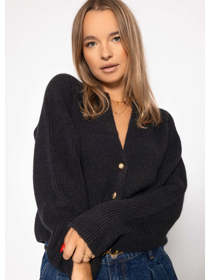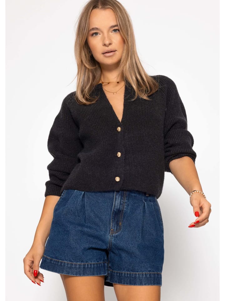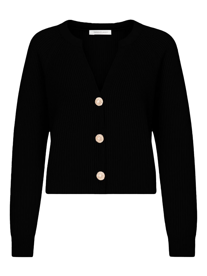 Черный кардиган с V-образным вырезом SASSYCLASSY