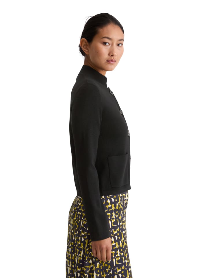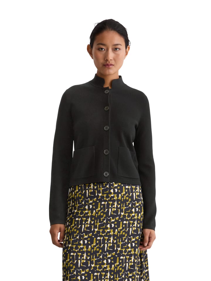 Современный дизайн кардигана сочетается с натуральным функциональным суперволокном! Кардиган с воротником-стойкой сочетается с легкой, сверхтонкой мериносовой шерстью! Результат впечатляет. Модный и функциональный предмет одежды, который отводит влагу, не вызывает зуда, не имеет запаха, согревает в холод и охлаждает в жару. Эта стильная модель с продуманными деталями на проймах имеет круглый вырез с непринужденным воротником-стойкой, длинные рукава, планку с контрастными пуговицами и два накладных кармана. Совет: он также идеально подходит для ношения с дирндлем на Октоберфесте.