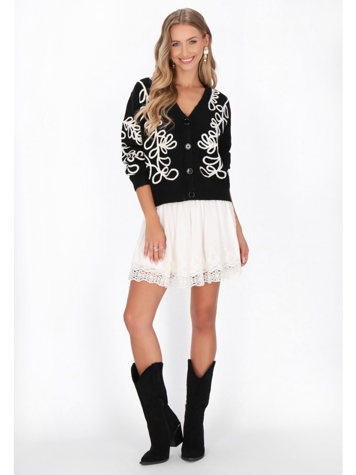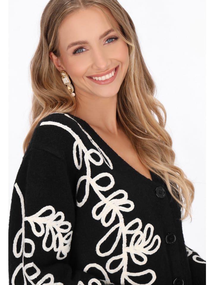 Будьте стильными и непринужденными в этом кардигане свободного кроя из коллекции Boho. Благодаря V-образному вырезу, длинным рукавам со спущенным плечом и застежке на пуговицы спереди, он сочетает в себе повседневный комфорт и легкость в сочетании с другими нарядами. Этот уютный кардиган, связанный из мягкой ткани и украшенный нежной цветочной вышивкой, добавит нотку богемного очарования любому образу. Он идеально подходит для повседневной носки, он одновременно удобен и стильно выглядит вне времени.