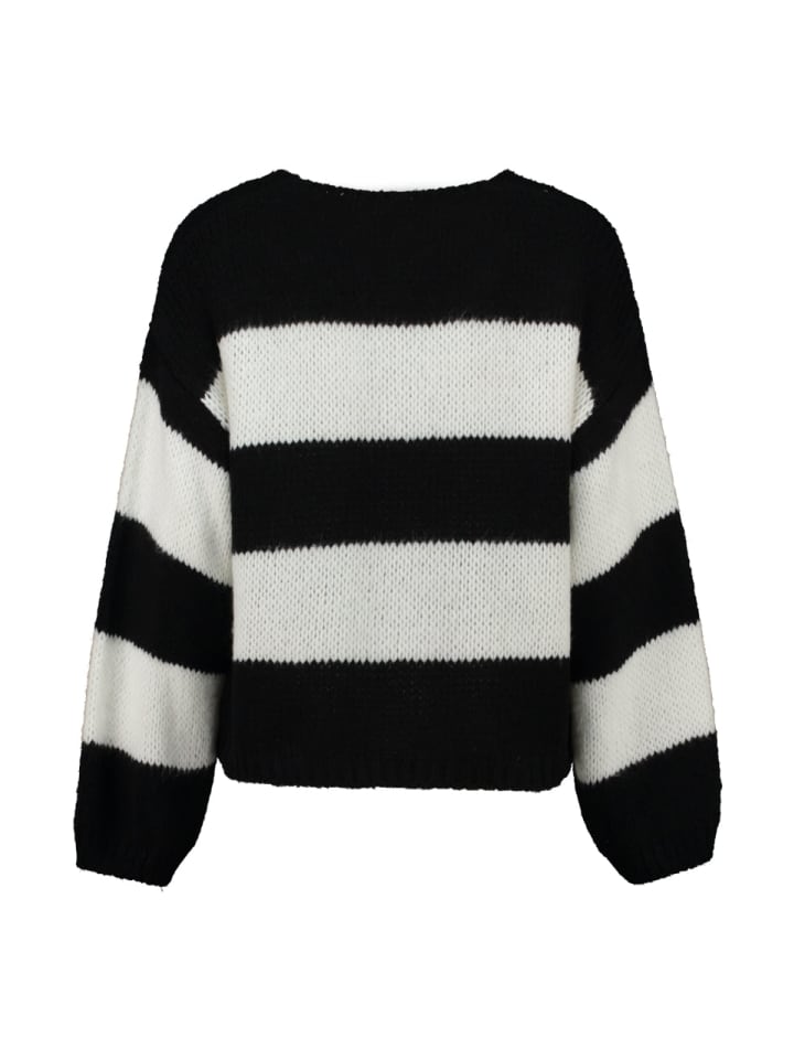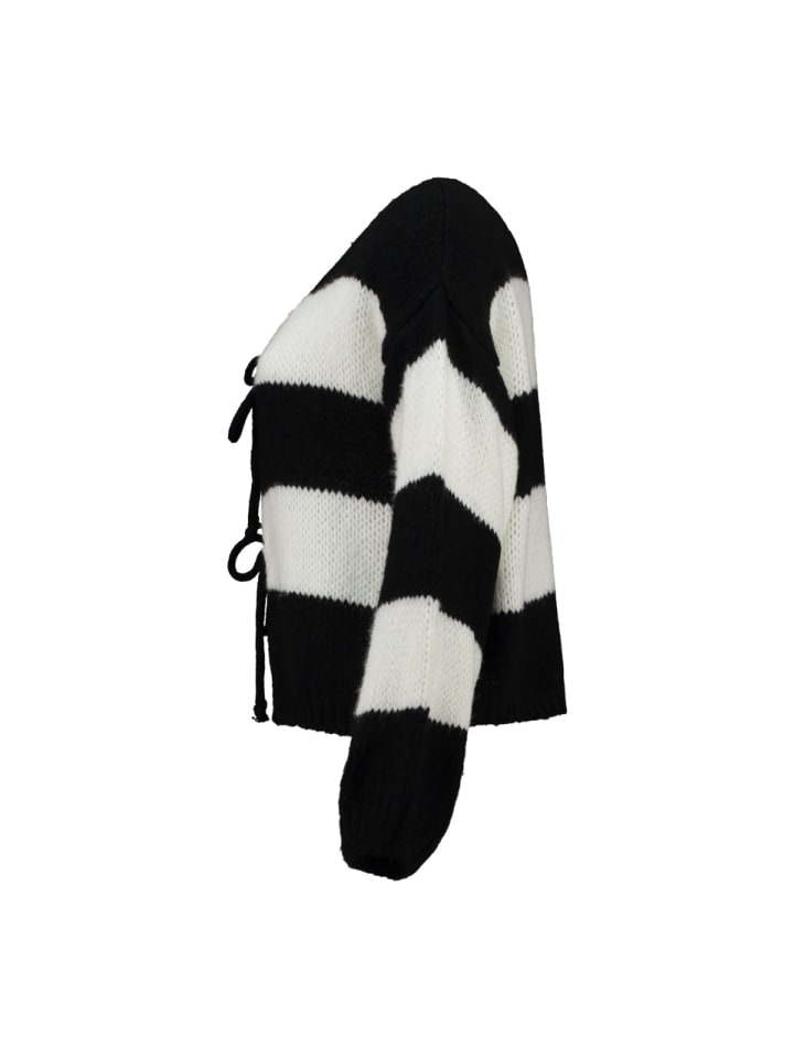 Кардиган HaILYS «Ch44arlie», в полоску, вырез лодочкой, завязка на шнурке, спущенные плечи, объемные рукава, ребристые манжеты, ребристый подол, укороченный передний край