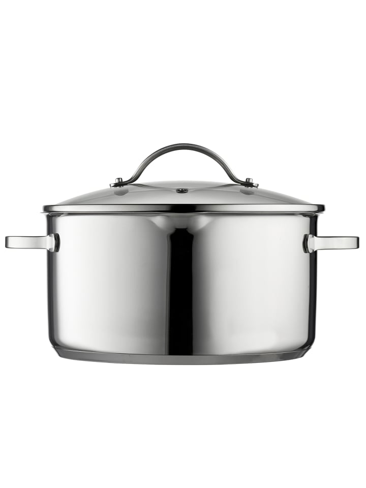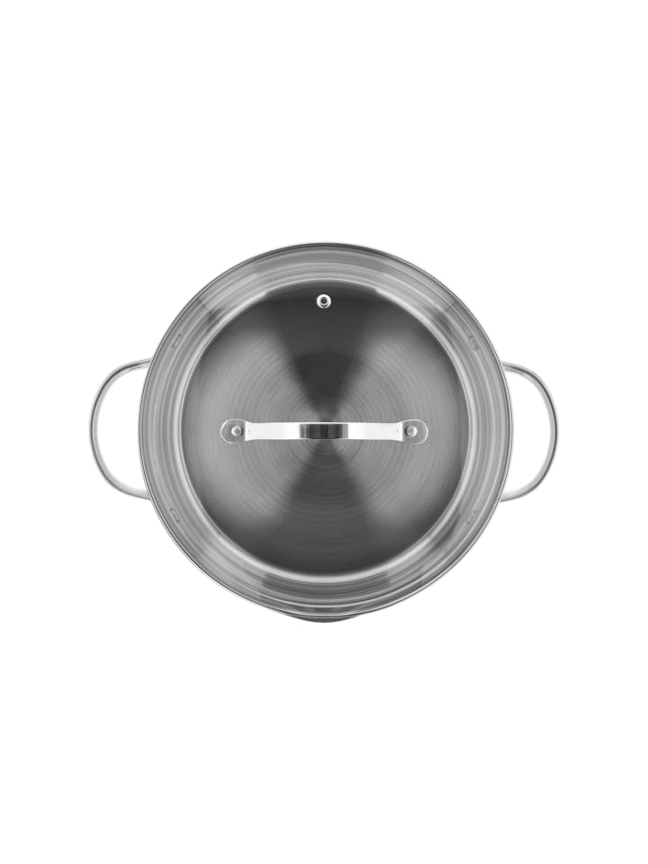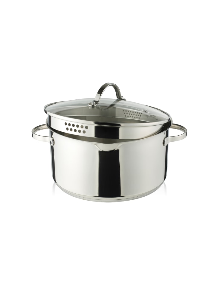 Кастрюля из нержавеющей стали объемом 5,0 л с внутренней мерной шкалой. Стеклянная крышка с двухсторонним ситечком позволяет выливать воду, не проливая содержимое. Подходит для всех плит, включая индукционные. Рекомендуем использовать с кастрюлей деревянную или пластиковую посуду. Перед использованием кастрюлю следует мыть вручную.