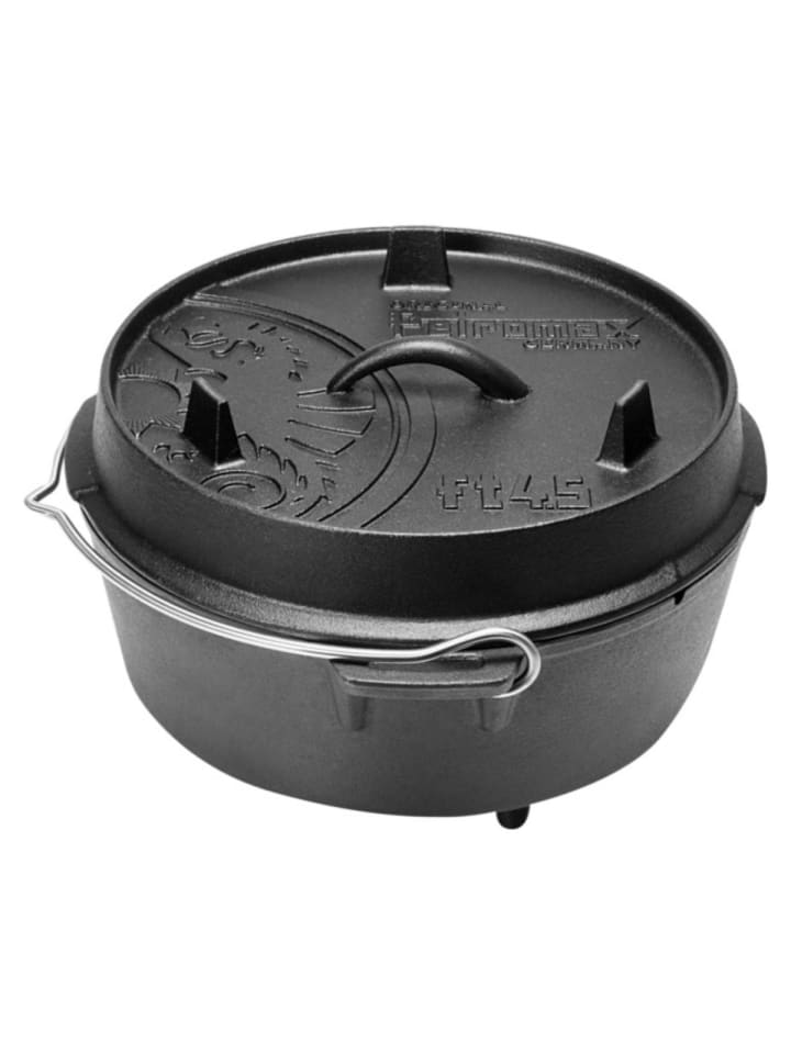 Горшок для костра Petromax объемом 4,5 фута подходит для 2-5 человек. Жаровни Petromax, также известные как голландские печи, идеально подходят для активного отдыха на природе, например, путешествий, кемпинга и т.д. В них такие продукты, как мясо и овощи, готовятся в собственном соку на открытом огне или в домашней духовке. Неповторимый вкус достигается за счет постоянного тепла, распространяющегося по всему объему внутри кастрюли. Крышки жаровен Petromax также можно использовать в качестве сервировочных блюд или сковородок. Благодаря предварительно обработанной поверхности прочная чугунная жаровня Petromax готова к использованию сразу же. С помощью жаровен Petromax вы можете готовить вкусные и полезные блюда на свежем воздухе для семьи и друзей.