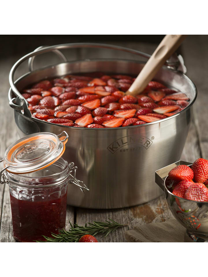 Эта стильная и профессиональная кастрюля для консервирования Kilner изготовлена из матовой нержавеющей стали. В кастрюле для консервирования Kilner предусмотрена внутренняя литровая и пинтовая шкала для удобного измерения ингредиентов. Встроенная ручка и носик позволяют легко разливать джем по емкостям для хранения. Дно кастрюли для джема Kilner выполнено из высококачественной, высокопрочной нержавеющей стали, армированной титаном. Кастрюля устойчива к коррозии и подходит для любых плит, включая индукционные.