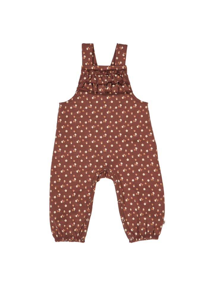 Эти комбинезоны - практичные брюки из мягкой и удобной толстовки. Подтяжки регулируются и застегиваются на кнопки в двух вариантах, обеспечивая идеальную посадку. Игривый принт с разбросанными цветами на коричневом фоне мгновенно навевает мысли об осени и заставит вашего малыша сиять. Спереди комбинезон украшен небольшой декоративной оборкой. Изготовленный из 100% чесаного хлопка, материал мягкий на ощупь и особенно удобен для младенцев и малышей. Выбранный материал делает его приятным на ощупь и долговечным. Эти комбинезоны идеально подходят для повседневной носки и предлагают практичную функциональность как дома, так и в дороге. Стандарт GOTS. Сертифицировано Ecocert Greenlife Lic. № 151714. Этот продукт сертифицирован GOTS Organic. В настоящее время это самый высокий стандарт для одежды. Все производственные процессы, такие как окрашивание, ткачество и шитье, осуществляются в соответствии со строжайшими правилами с учетом охраны окружающей среды. Условия труда также строго контролируются на каждом этапе производства. Хлопок 95%, эластан 5%