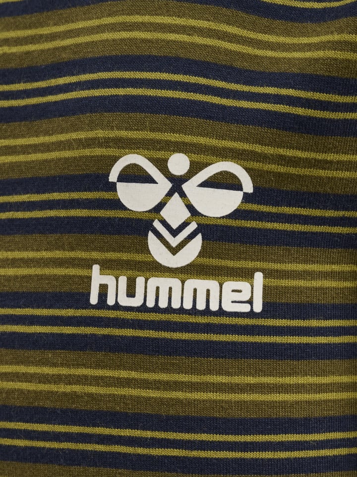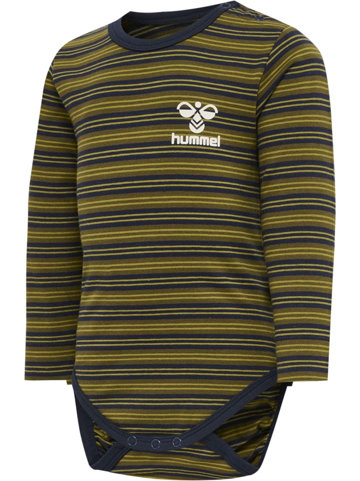 Комбинезон hmlUNITED BODY L/S, изготовленный из окрашенного в пряже полосатого трикотажа, сертифицирован по стандарту OEKO-TEX STANDARD 100 как не содержащий вредных, токсичных или аллергенных веществ. Этот боди с длинными рукавами от Hummel оснащен кнопками для быстрого надевания и имеет удобный круглый вырез. Контрастный принт с логотипом Bumblebee спереди завершает дизайн.