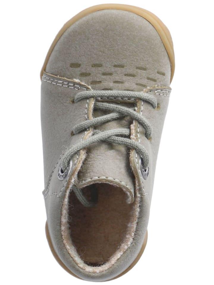 Легкие ботинки "TED" от Pepino обеспечивают надежную поддержку детских ножек во время первых шагов благодаря простой системе шнуровки. Эта модель унисекс, разработанная как обувь для босых ног, оснащена съемными стельками из вареной шерсти, которые легко очищаются после ношения. Верх из натуральной кожи делает эти ботинки для начинающих особенно простыми в уходе и устойчивыми к загрязнениям. Подъем обуви украшен нежным перфорированным узором, а подошва изготовлена из чистого натурального каучука. Эти ботинки, доступные в различных цветах, идеально подходят для праздников.