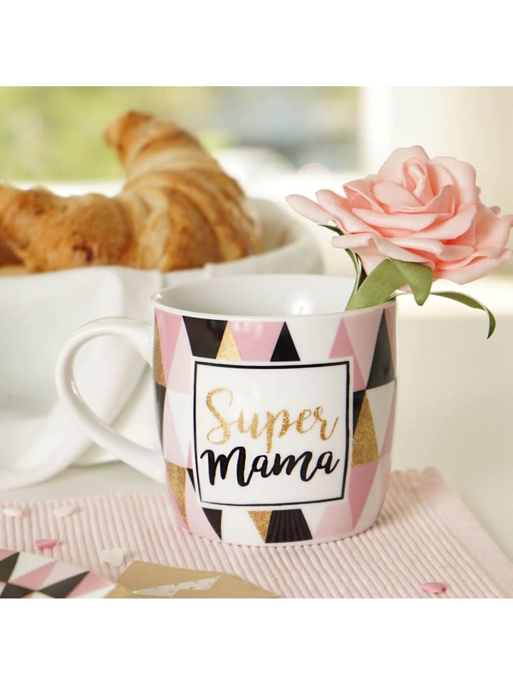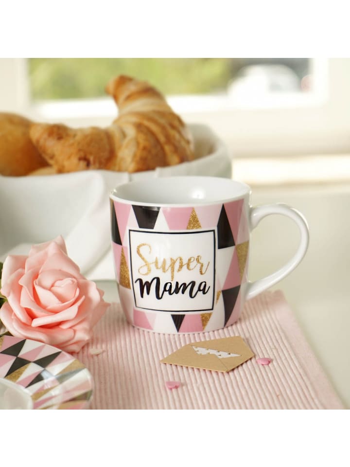 Кружка с рисунком Супер мама розового цвета - 300 мл Geda Labels