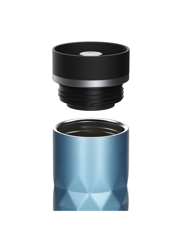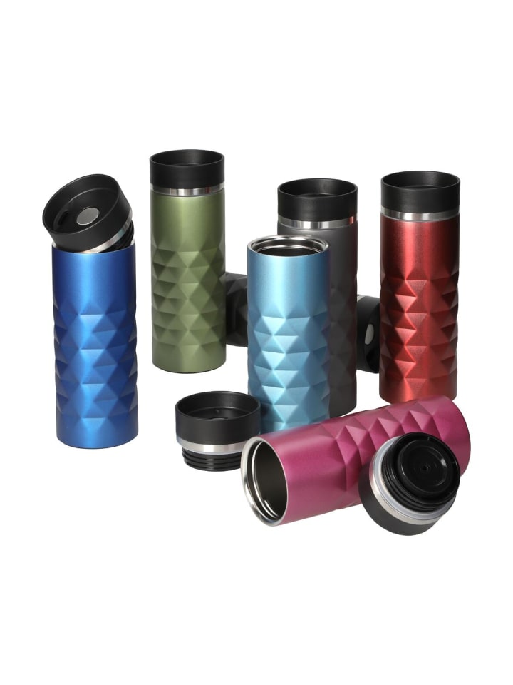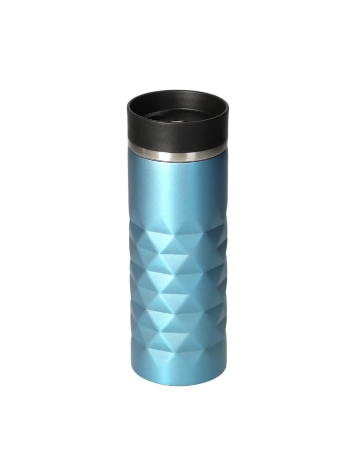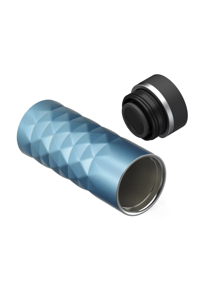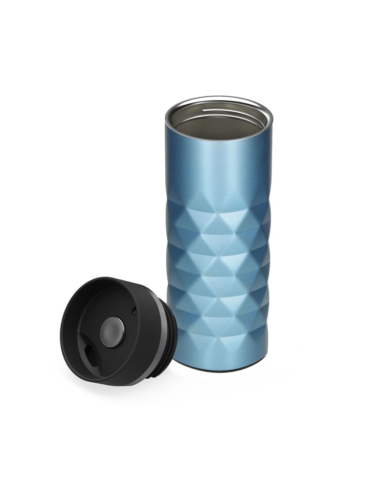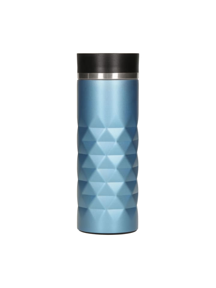 Высококачественная термокружка с матовым ромбовидным узором и блестящим эффектом. Двойные стенки кружки из нержавеющей стали с вакуумной изоляцией оснащены крышкой с кнопкой для легкого открывания и закрывания носика для питья одной рукой. Прорезиненное основание обеспечивает надежный захват даже на гладких поверхностях и защищает поверхности от царапин. Объем: 0,45 литра.