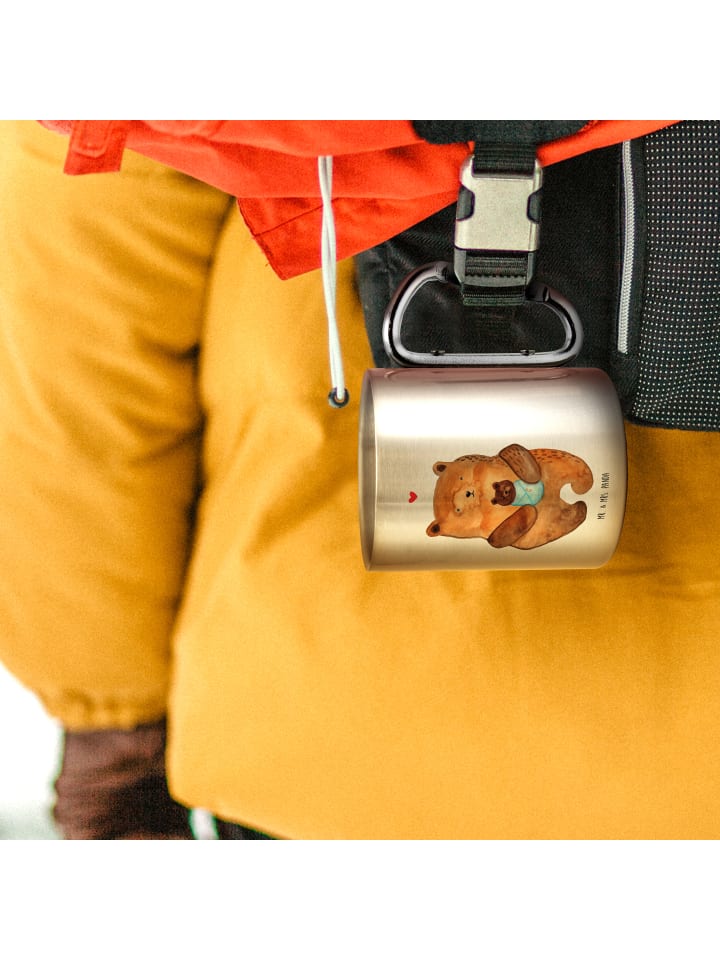 Ознакомьтесь с кружкой из нержавеющей стали от Mr. & Mrs. Panda - незаменимым аксессуаром для всех, кто любит отдых на природе! Объем кружки составляет 330 мл, а вес - всего 145 г. Изготовленная из высококачественной нержавеющей стали, она удобна для переноски и сохраняет напитки как горячими, так и холодными. Сочетание функциональности и стильного дизайна делает ее идеальным спутником в походах, походах или просто в саду. Практичный карабин позволяет надежно закрепить кружку на рюкзаке или водонепроницаемой бутылке для воды LieblingsElement. Бережно мойте кружку вручную, так как ее нельзя мыть в посудомоечной машине. Позвольте себе быть очарованными нежными высказываниями и дизайнами от Mr. & Mrs. Panda - отличный подарок для себя или своих близких!
