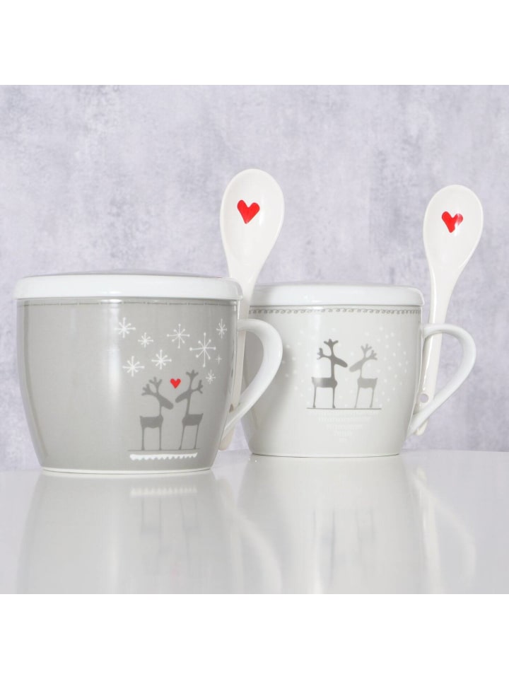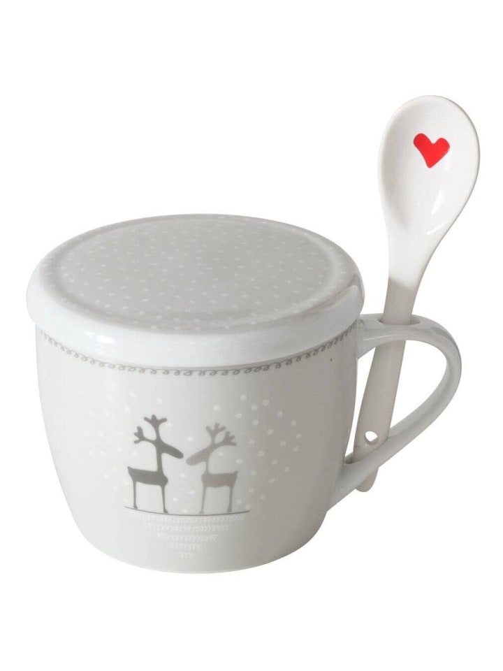Рождественская фарфоровая кружка Jumbo объемом 600 мл с крышкой и ложкой - большая вместимость и высококачественный фарфор