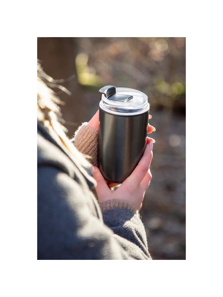 Эта двухстенная кофейная кружка - идеальный спутник в дороге. Благодаря продуманной конструкции она помещается в большинство кофемашин и практически во все стандартные автомобильные подстаканники. Внешняя часть изготовлена из прочной нержавеющей стали, а внутренняя - из высококачественного пластика. Встроенный силиконовый уплотнитель в крышке обеспечивает надежную фиксацию напитка. Удобный язычок на крышке позволяет легко открыть кружку. Надежный спутник для наслаждения кофе, где бы вы ни находились.