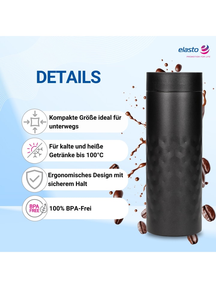 Термокружка "Кристалл" черного цвета - 450 мл elasto