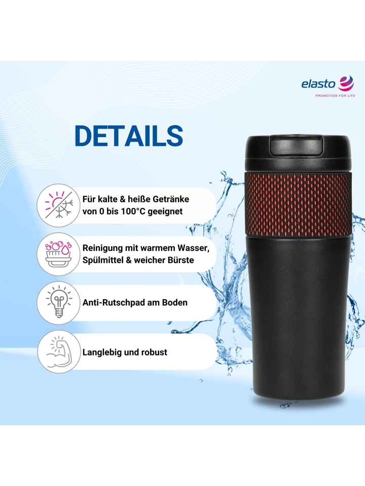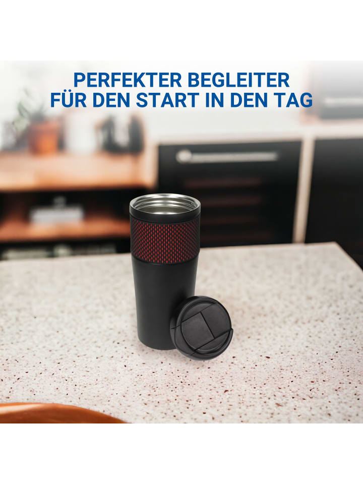 Ощутите удобство и универсальность нашей термокружки «Temptation». Независимо от того, наслаждаетесь ли вы утренним кофе по дороге на работу или хотите выпить чаю дома, эта кружка - идеальный выбор. Наслаждайтесь горячим или холодным: наша большая термокружка со стильным чехлом дольше сохраняет ваши любимые напитки при идеальной температуре - поэтому каждый напиток будет иметь именно такой вкус, как вам нравится! Прочная и долговечная: изготовленная из высококачественной нержавеющей стали, наша дорожная кружка «Temptation» имеет двойные стенки. Ее объем 0,5 литра идеально подходит для ежедневного использования! Удобна в использовании: благодаря нескользящему основанию и встроенному силиконовому чехлу наша термокружка обеспечивает надежный захват и современный дизайн! Универсальное использование: эта большая термокружка идеально подходит в качестве дорожной кружки, кружки для кофе с собой или кружки для чая для повседневного использования дома, в офисе или в дороге.