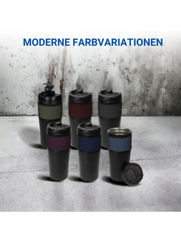 Серый силиконовый чехол не только обеспечивает надежный захват, но и придает кружке современный вид. Эта кружка объемом около 0,5 литра идеально подходит для путешествий или повседневного использования дома или в офисе.