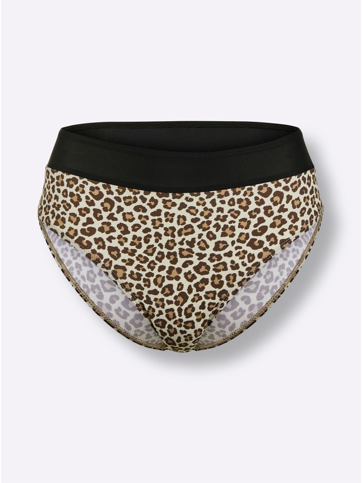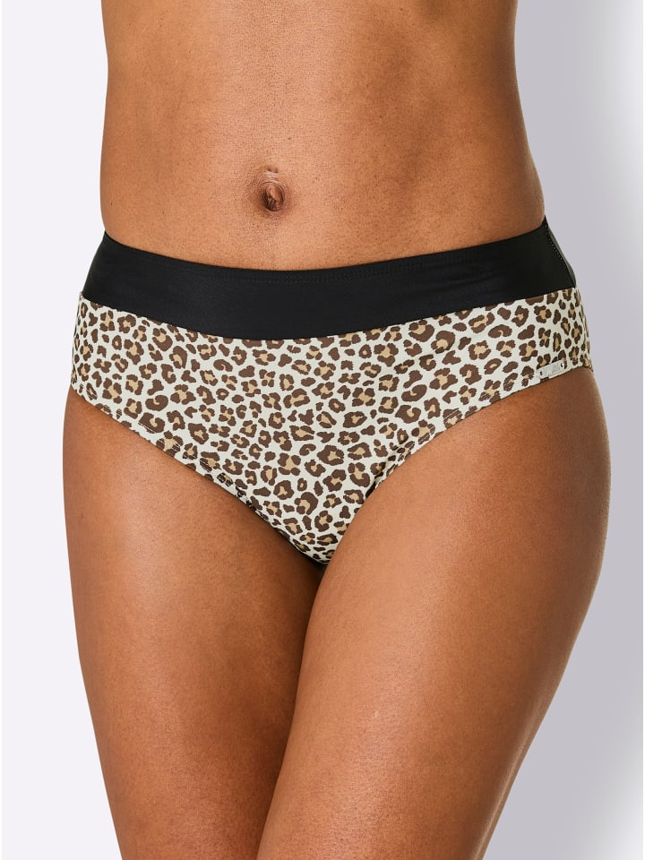С анималистичным принтом: плавки-бикини с широким поясом.