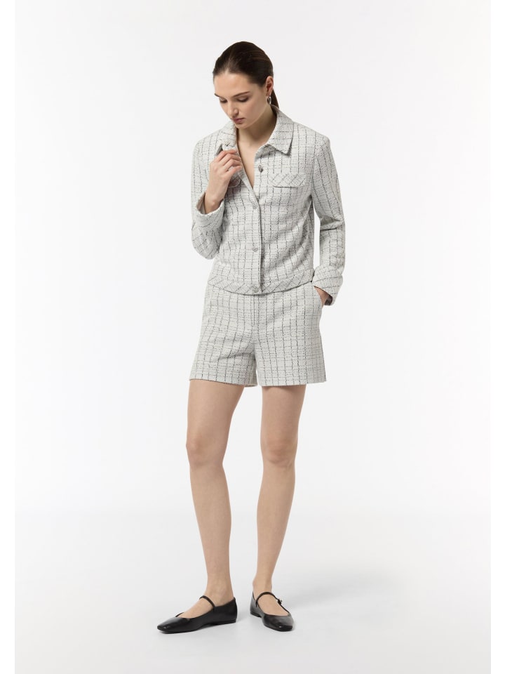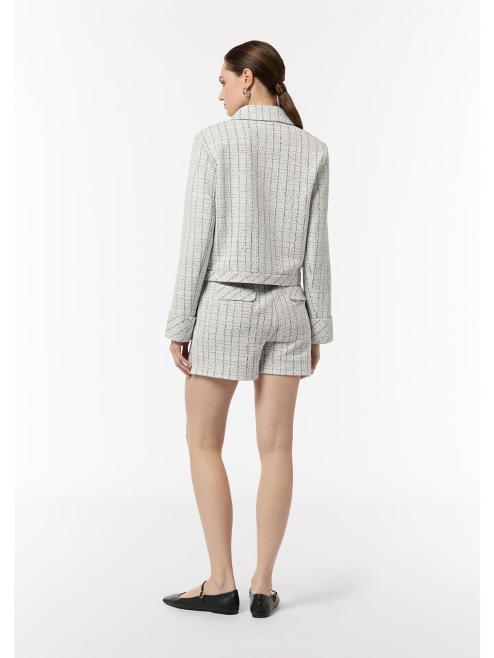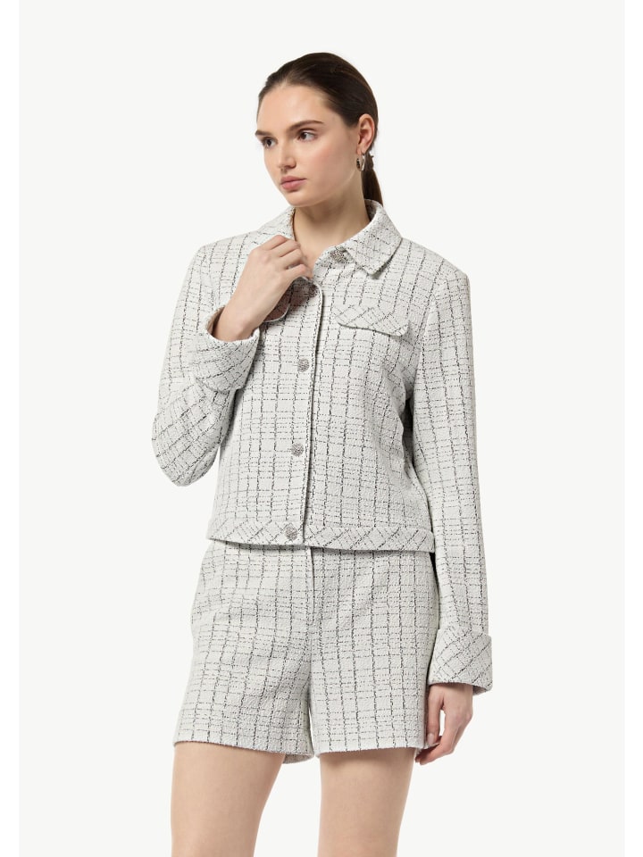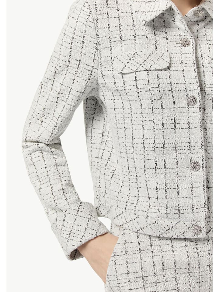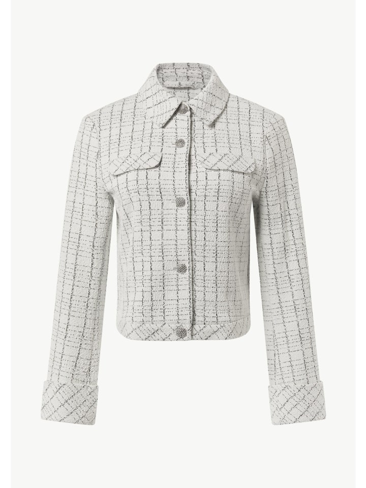 Позвольте себе поддаться очарованию изысканной букле-фактуры этой домашней куртки. Металлические акценты придают этой классической модели современный вид. Отложной воротник и планка на пуговицах создают элегантный силуэт, а нагрудный карман добавляет практичности и шика. Эта укороченная куртка прямого кроя идеально подходит для деловых мероприятий.