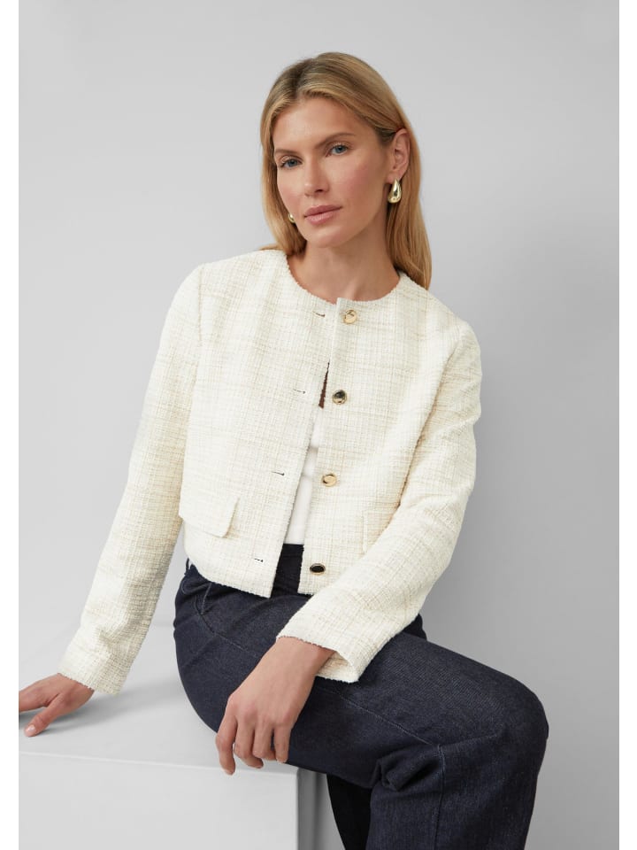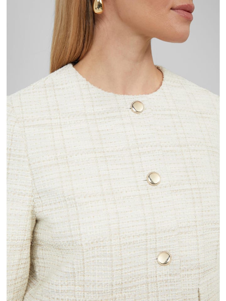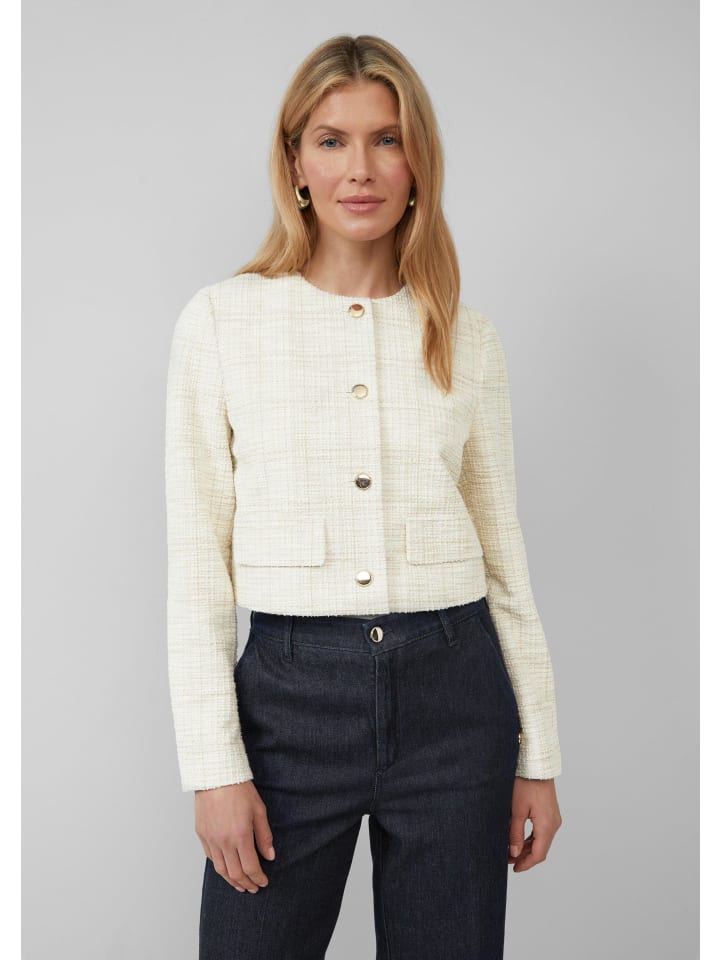 Блестящая элегантность и современная непринужденность. Этот блузон из букле с металлизированной нитью идеально сочетается с повседневным и деловым стилем. Укороченный крой и женственный силуэт подчеркнут ваш индивидуальный стиль. В офисе или на ужине вы будете излучать уверенность в любой ситуации.