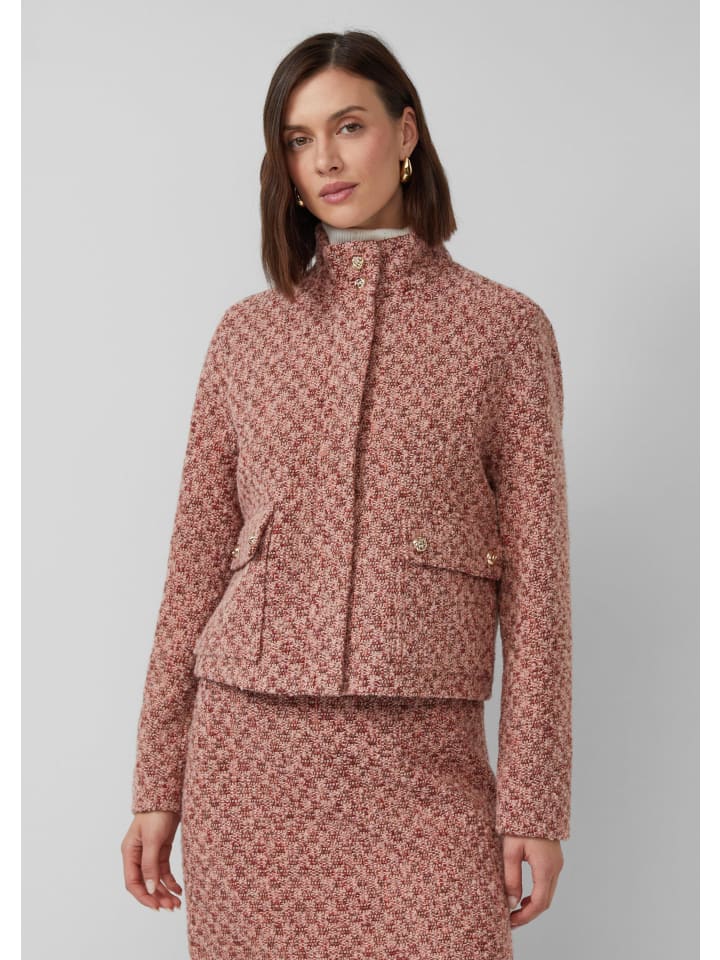 Элегантность и функциональность: эта куртка из букле на подкладке станет вашим стильным спутником на все случаи жизни. Благодаря потайной молнии и элегантной бляшке с логотипом, она сочетает в себе тепло и изысканность. В офисе или на природе вы будете излучать уверенность. Классический крой и короткая длина идеально подчеркнут ваш силуэт.