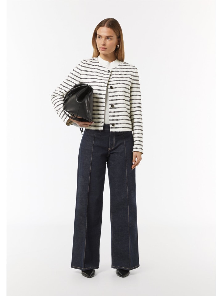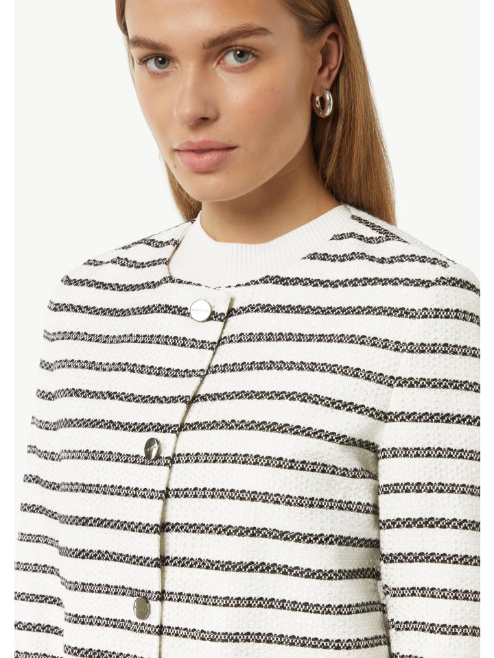Этот жакет из букле с планкой на пуговицах станет вашим новым модным акцентом. Он украшен полосатым узором и легкой подкладкой для максимального комфорта. Длинные рукава подчеркивают фигуру и позволяют создавать множество образов. Носите его непринужденно с джинсами или элегантно с юбкой-карандаш - это универсальная вещь для вашего гардероба.