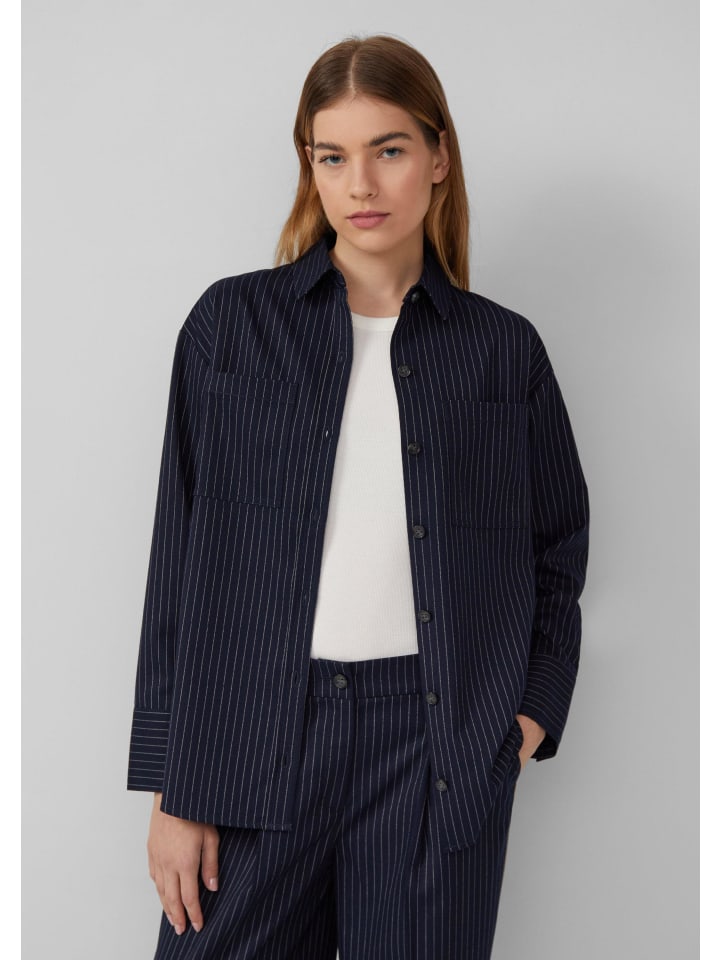 Расслабьтесь в течение дня: эта свободная полосатая рубашка с классическим рубашечным воротником станет вашим новым любимым спутником. Повседневная домашняя куртка свободного кроя с элегантными тонкими полосками и практичной планкой на пуговицах.