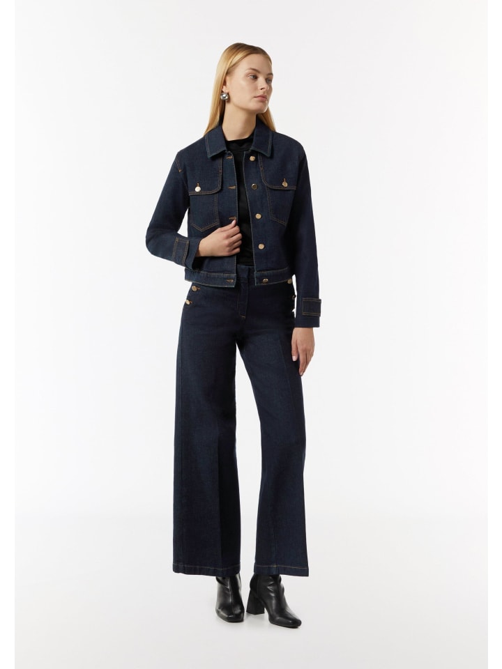 Эта джинсовая куртка создает непринужденный стиль. Золотистые пуговицы добавляют стильные акценты и придают изделию элегантность. Изготовленная из высококачественного хлопка, она обеспечивает максимальный комфорт. Свободный крой позволяет создавать разнообразные образы - идеальный вариант для повседневного шика. Сочетайте куртку с водолазкой для создания модного многослойного образа или носите ее отдельно поверх легкого летнего платья.